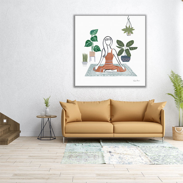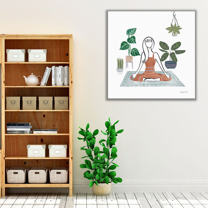 A serene piece featuring neutral tones and green leaves, evoking a calming and refreshing atmosphere with its white and natural palette.