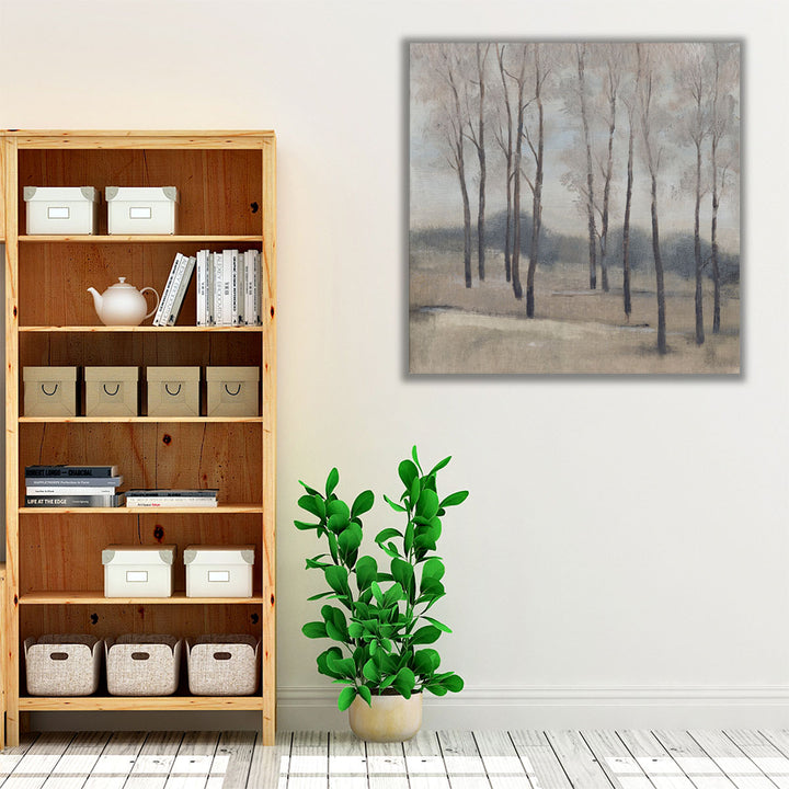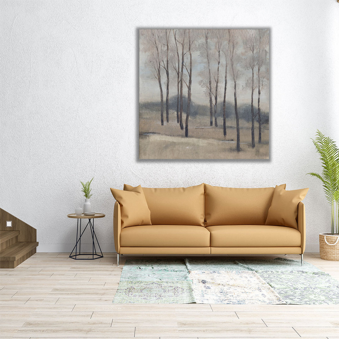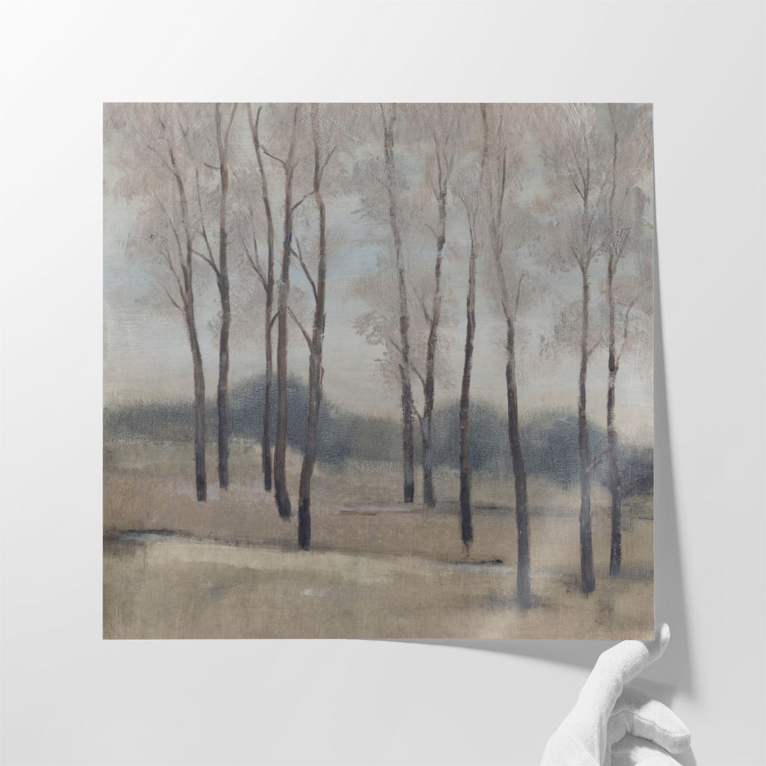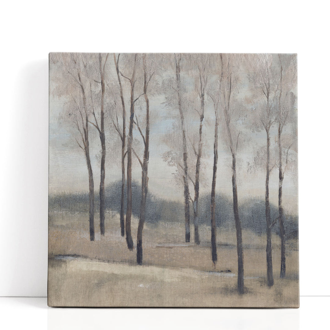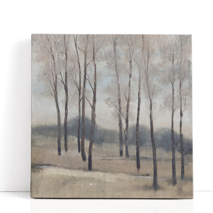 This captivating piece features a scenic portrayal of trees bathed in soft light, creating a serene and tranquil atmosphere that enhances any space.