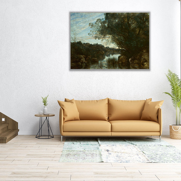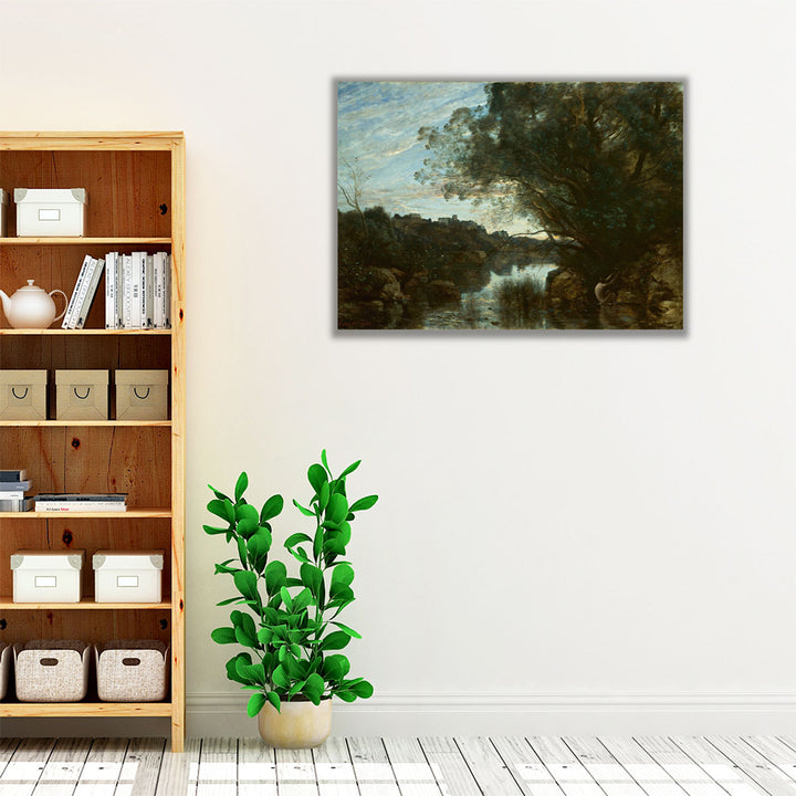 Souvenir of the Environs of Lake Nemi, 1865 Canvas Print by Jean Baptiste Camille Corot.