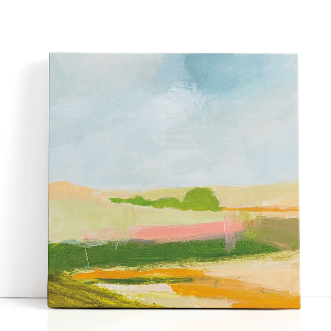 This abstract art features neutral tones of green and blue, creating a harmonious and modern aesthetic for your space.