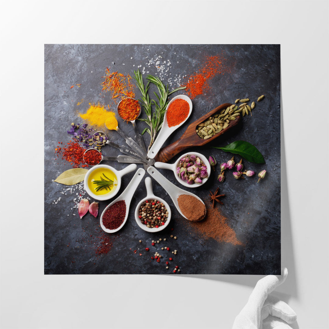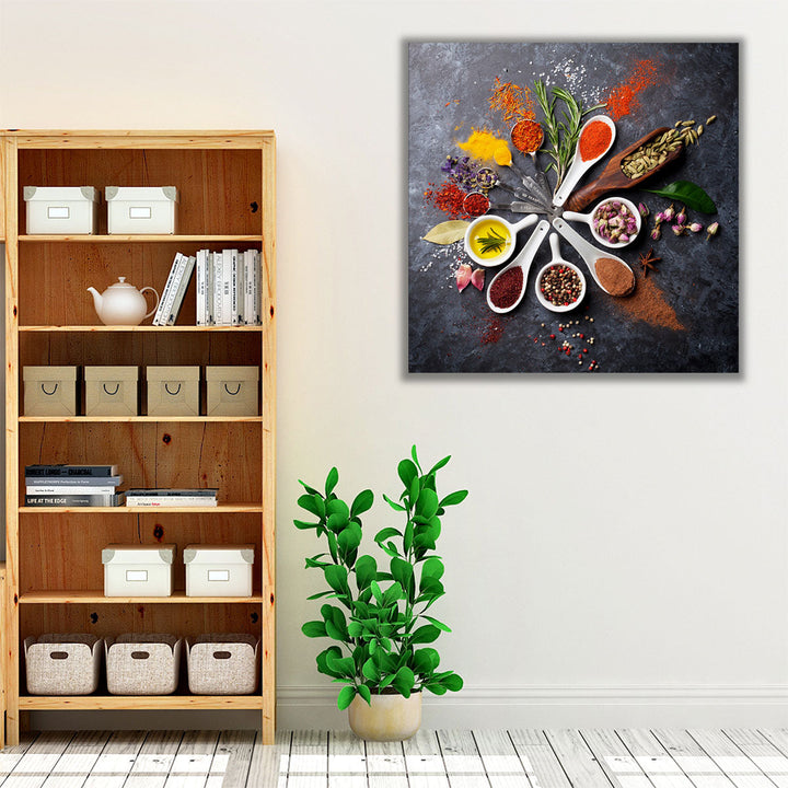 Herbs and Spices Square Kitchen Decor, Restaurant Art Canvas Art.
