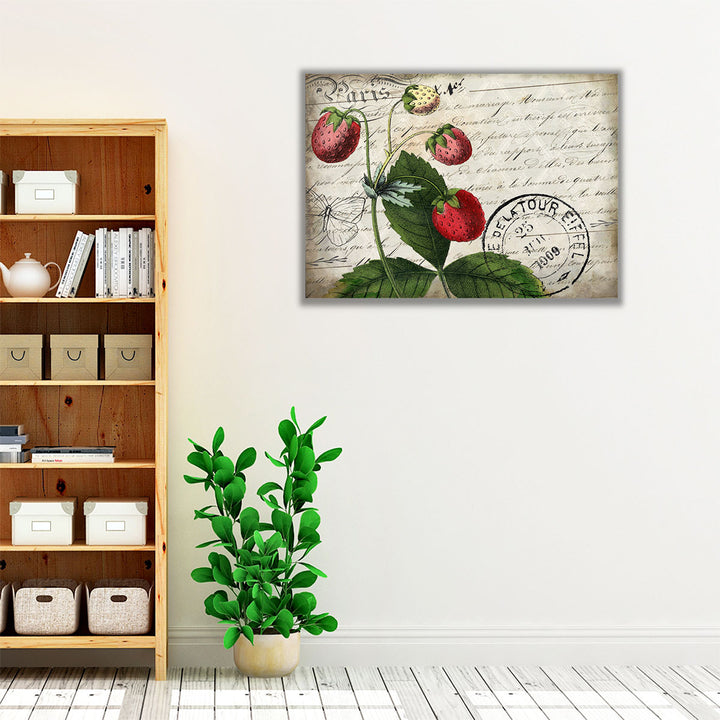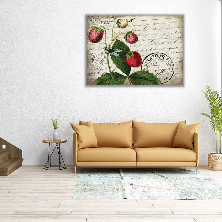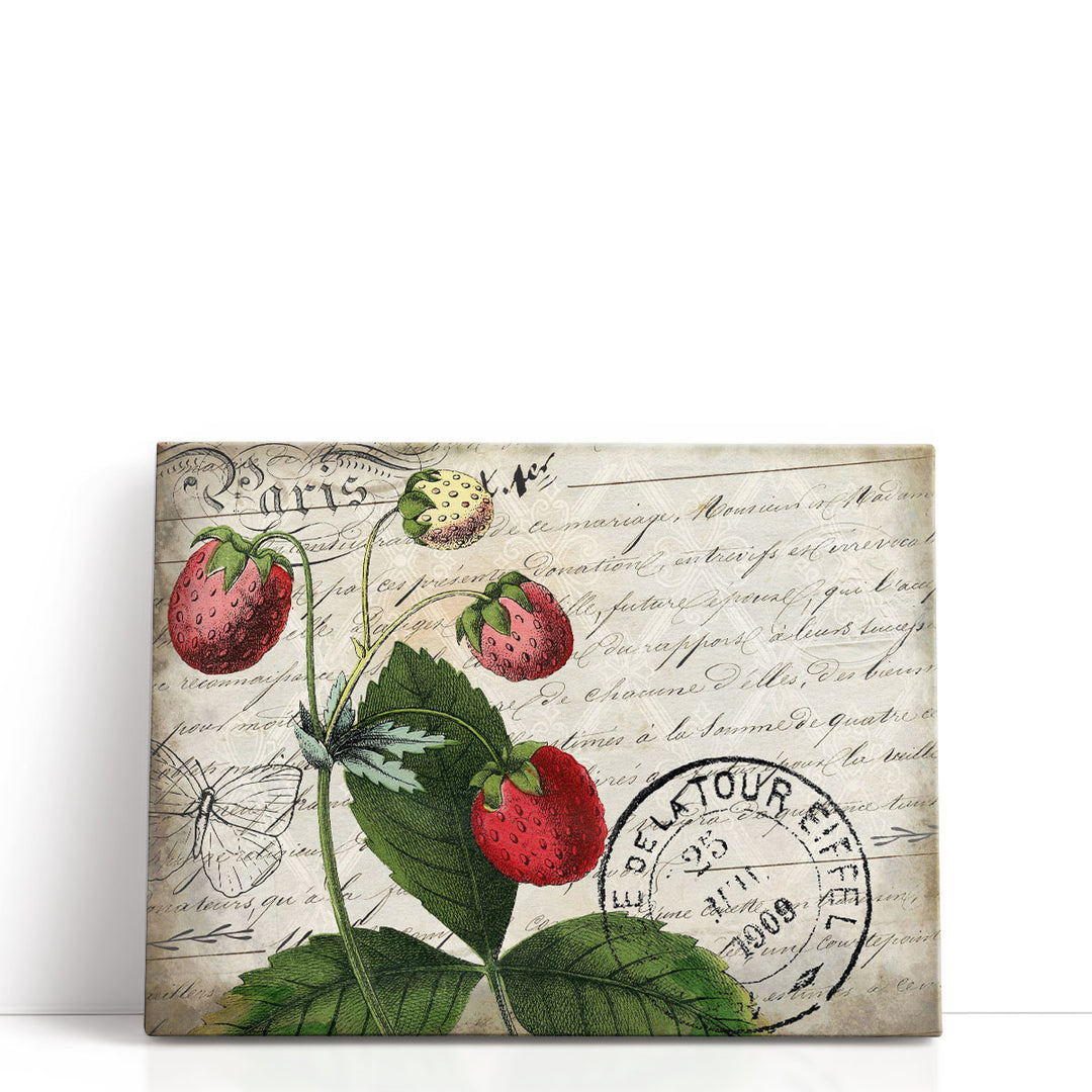 Vintage Fruit Wall Art, Green Botanical Prints Wall Art, Big Canvas Art for Kitchen | Vintage Strawberry