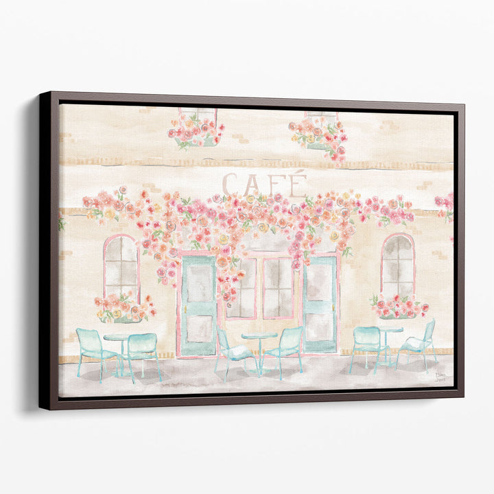 This beautiful artwork captures a cozy cafe scene with a floral chair, adding a touch of charm and elegance to your living space.