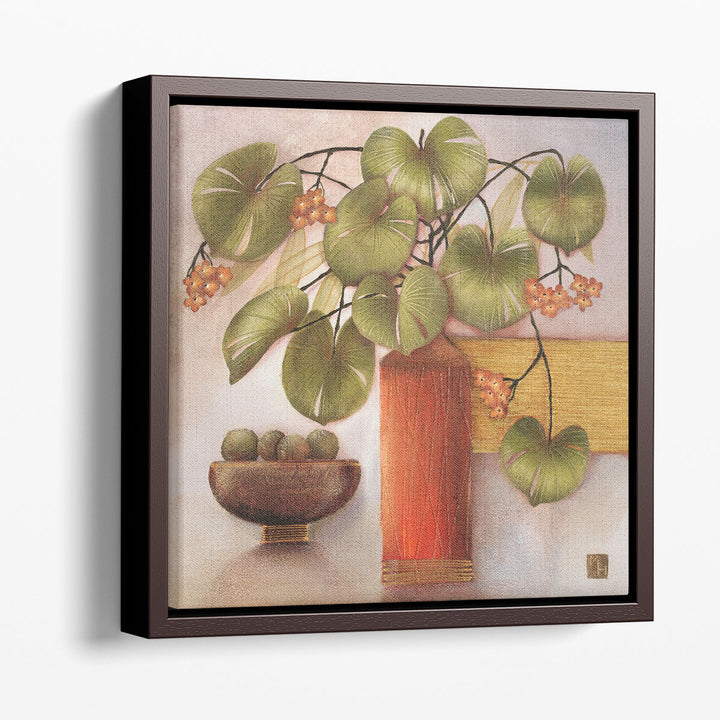 Passion Fruit And Vase Canvas Wall Art by Margaret Hughlock
