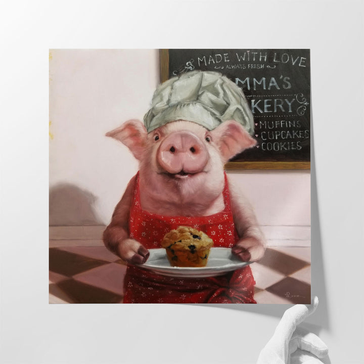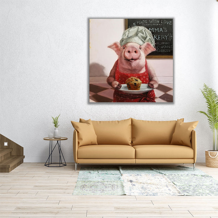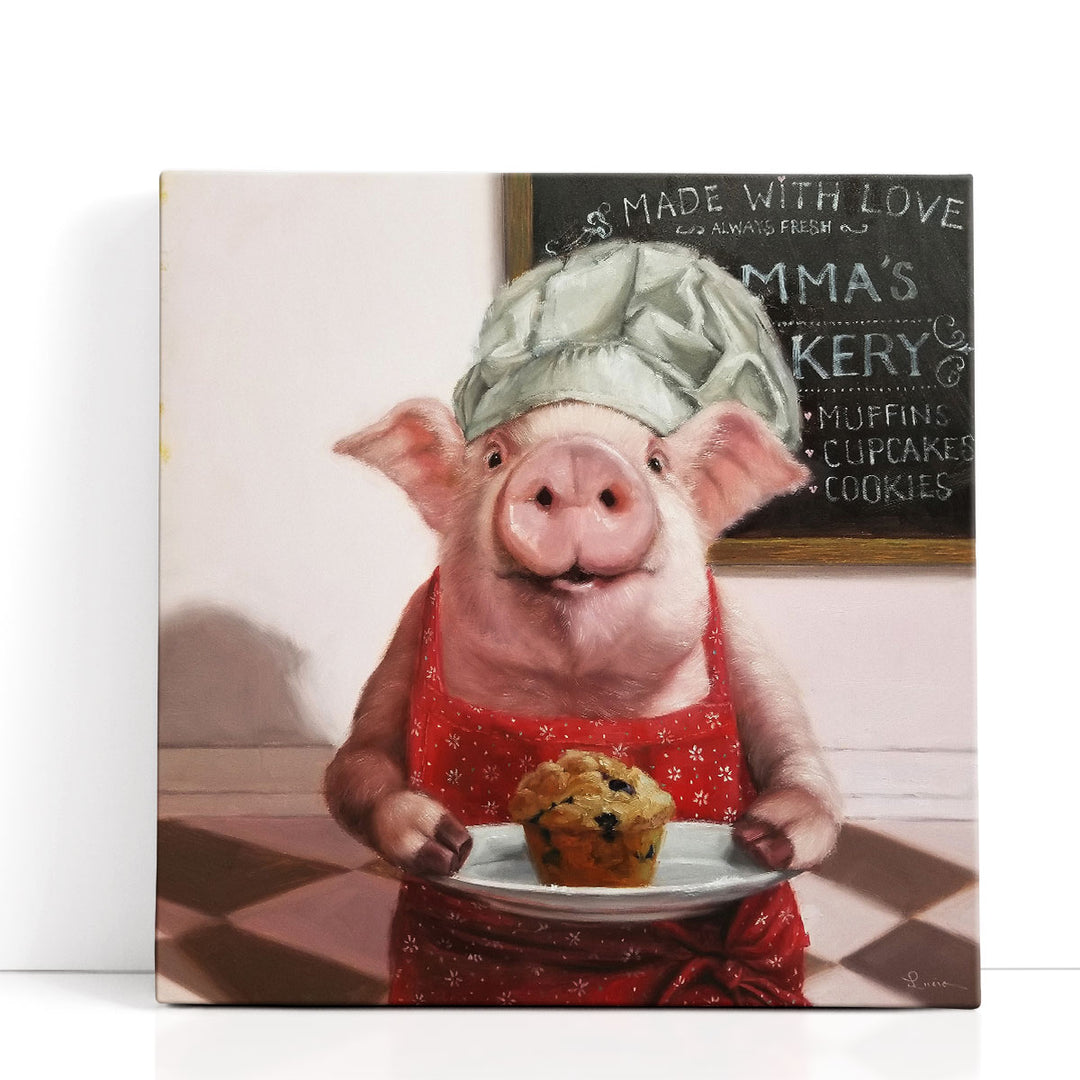 Contemporary Childrens Canvas Art, Funny Animal Wall Art, Still Life Quirky Wall Art for Kitchen | Pinkies Bakery