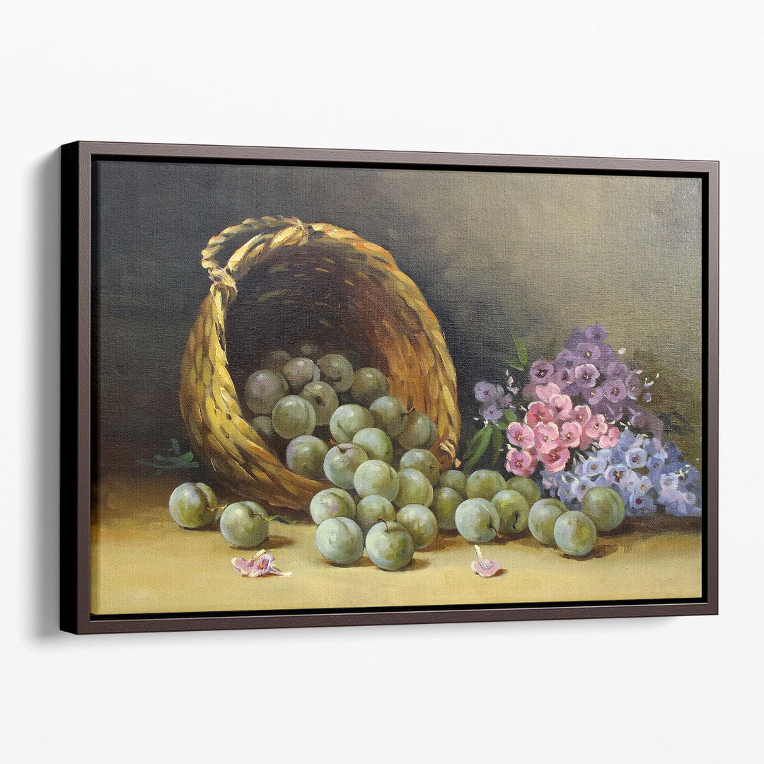 Ripe Juicy Plums in a Basket Oil Painting Print framed art print.