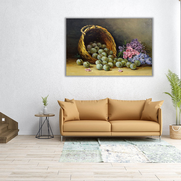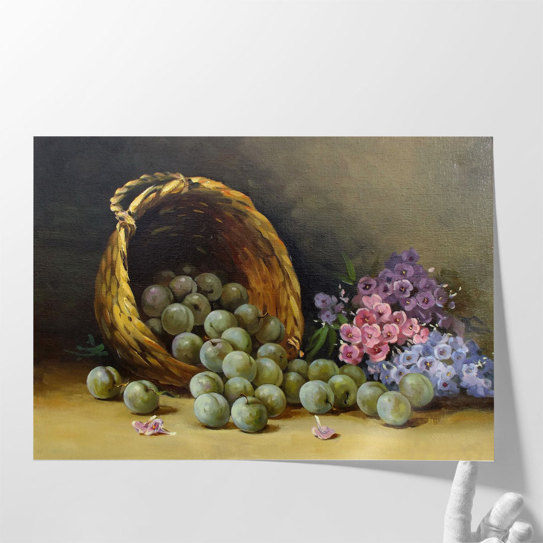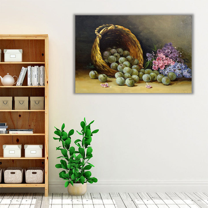 Ripe Juicy Plums in a Basket Oil Painting Print - Canvas Print Wall Art