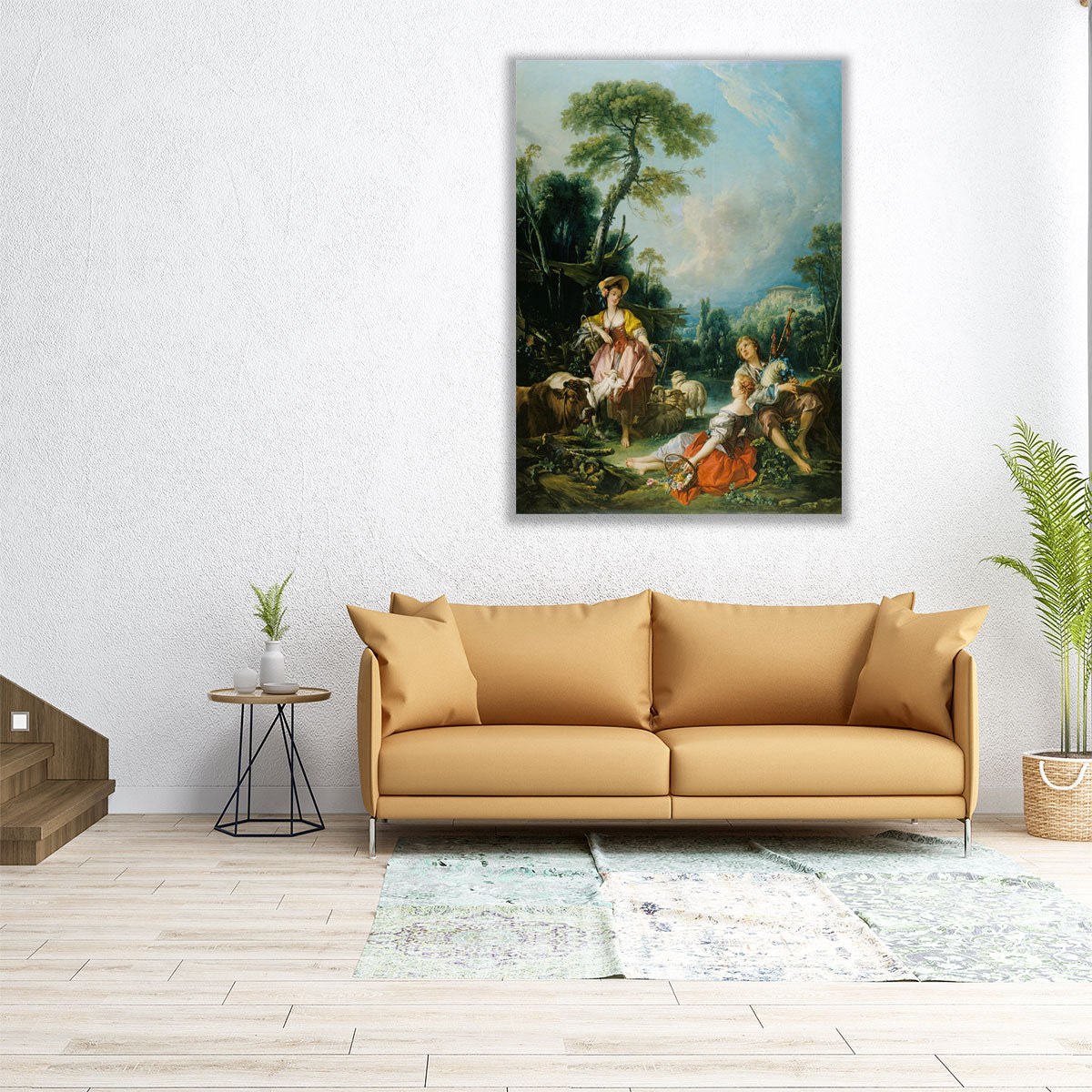 Pastoral with a Bagpipe Player, 1749 Framed Art Print by François Boucher.