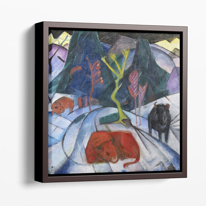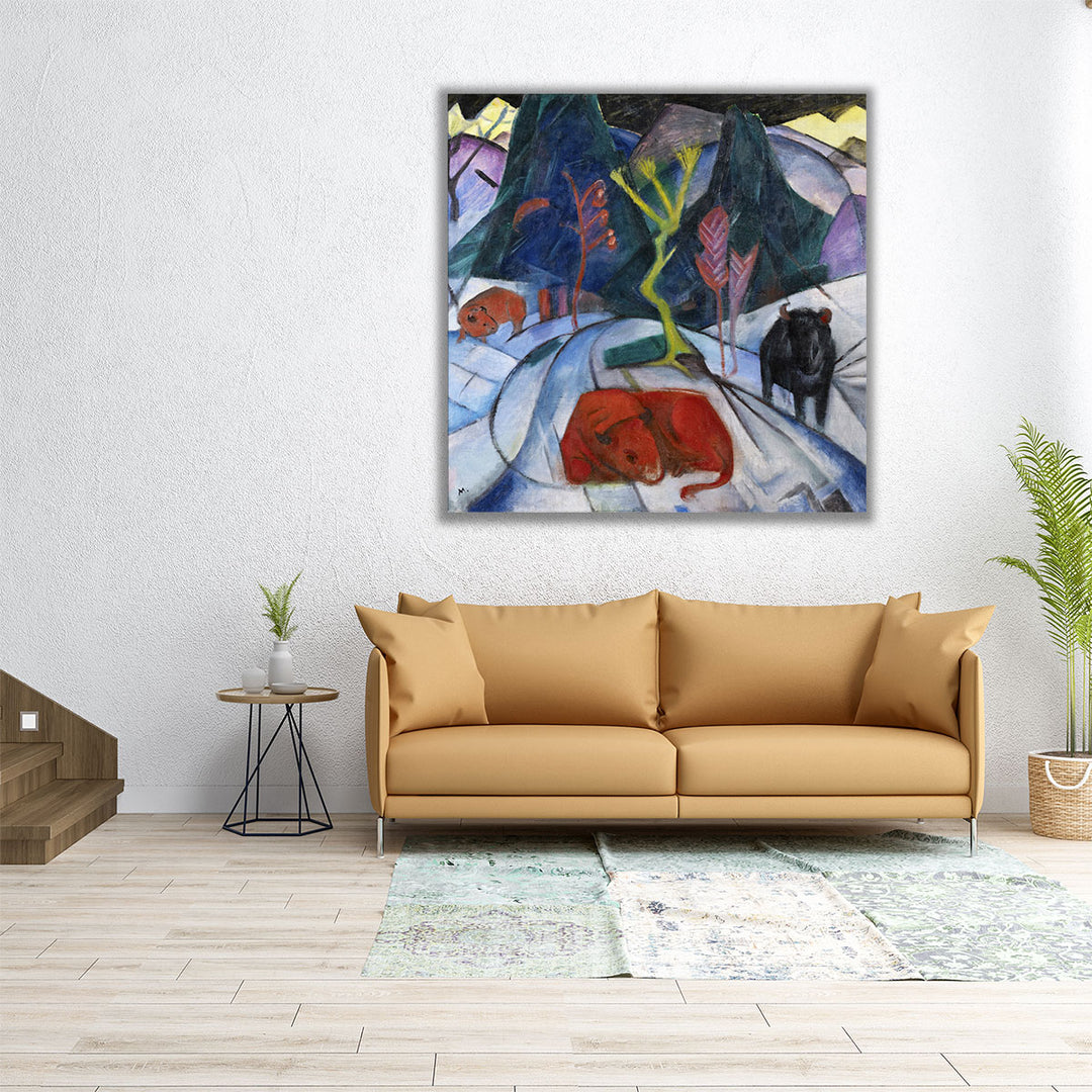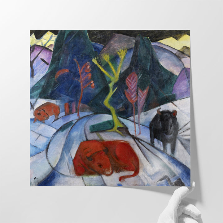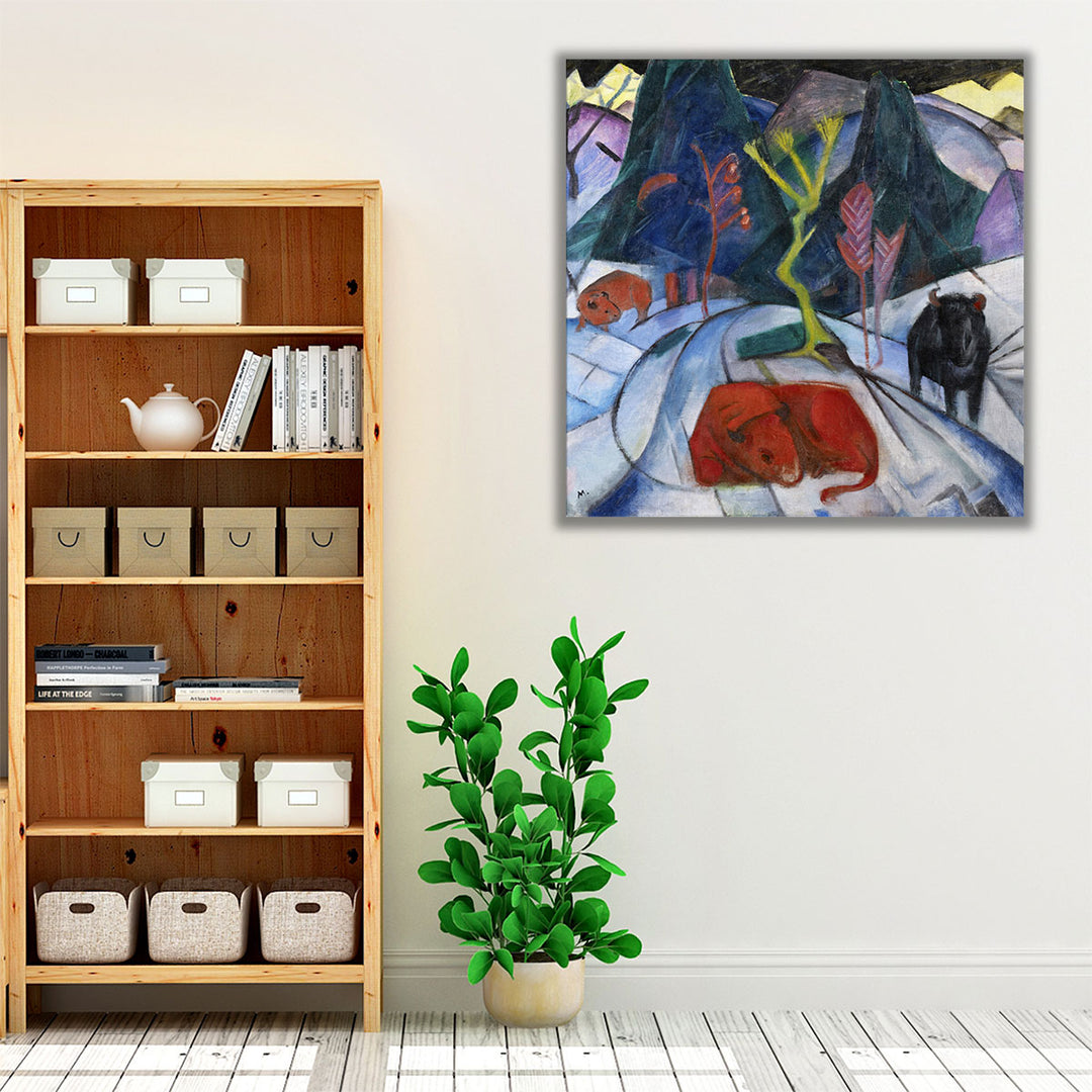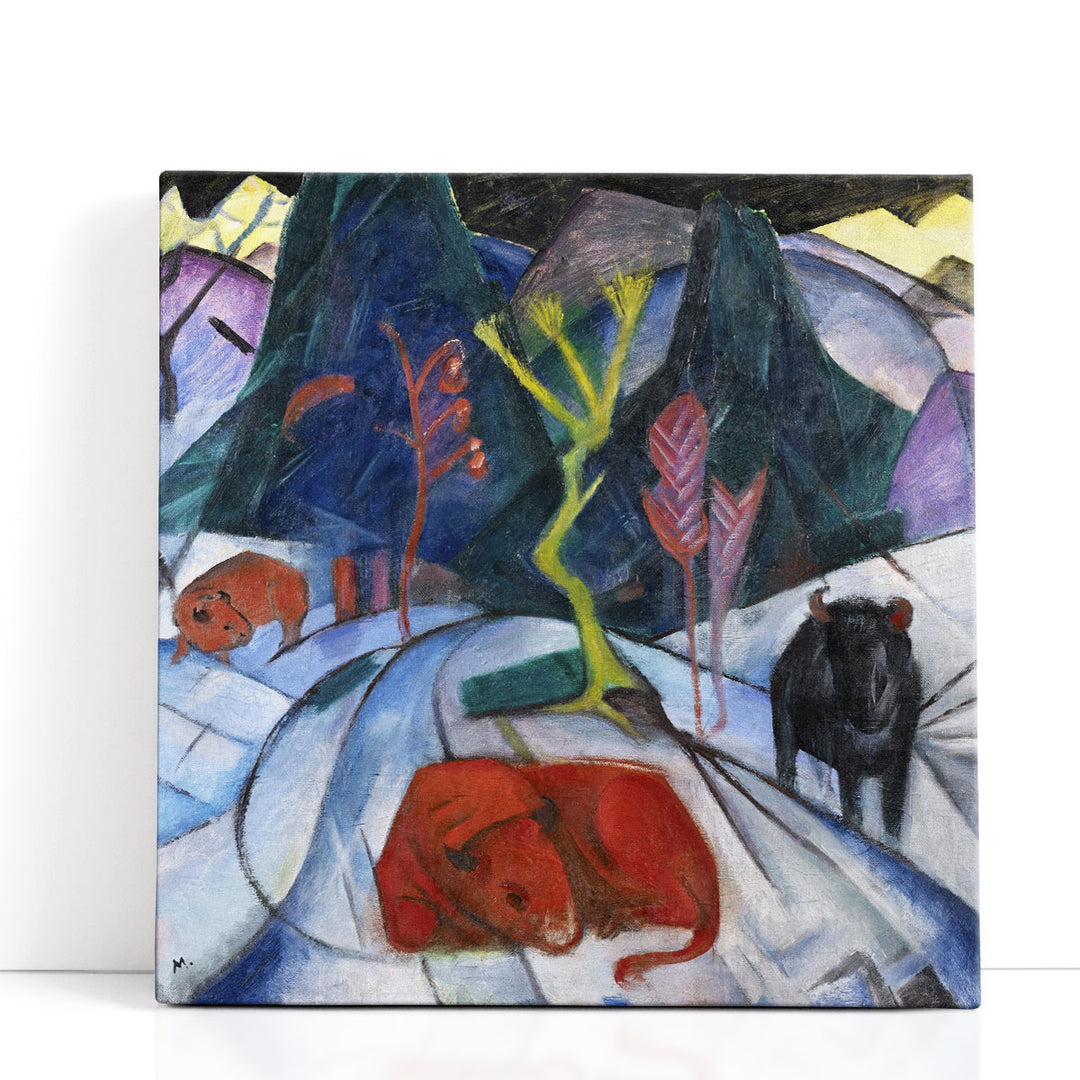 Bison in Winter, Red Bison, 1913 Canvas Wall Art by Franz Marc.