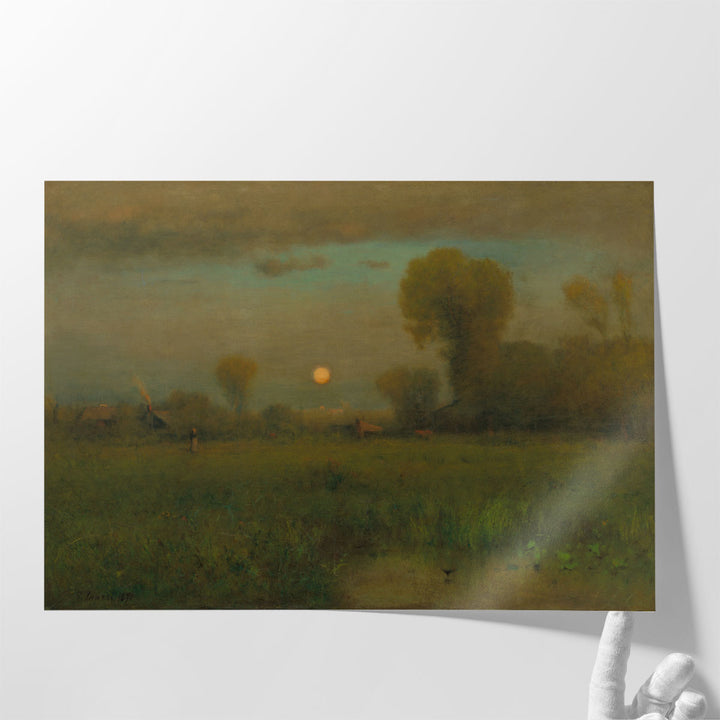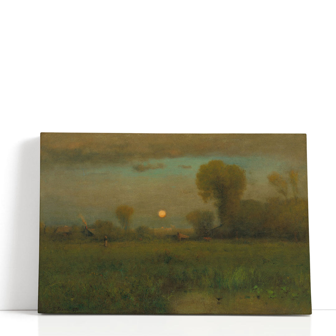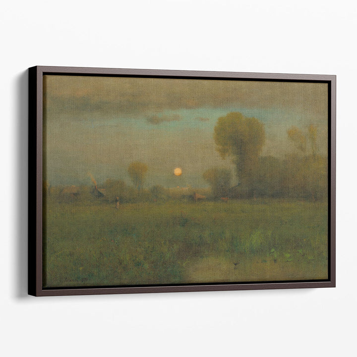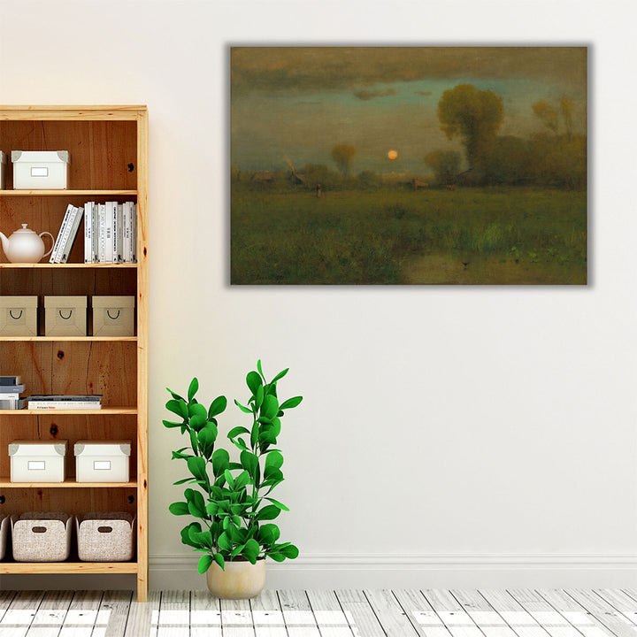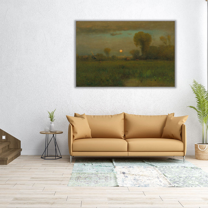 Bathed in rich greens, the classical landscape portrays a tranquil fusion of trees and nature, ideal for adding serenity to a living room.