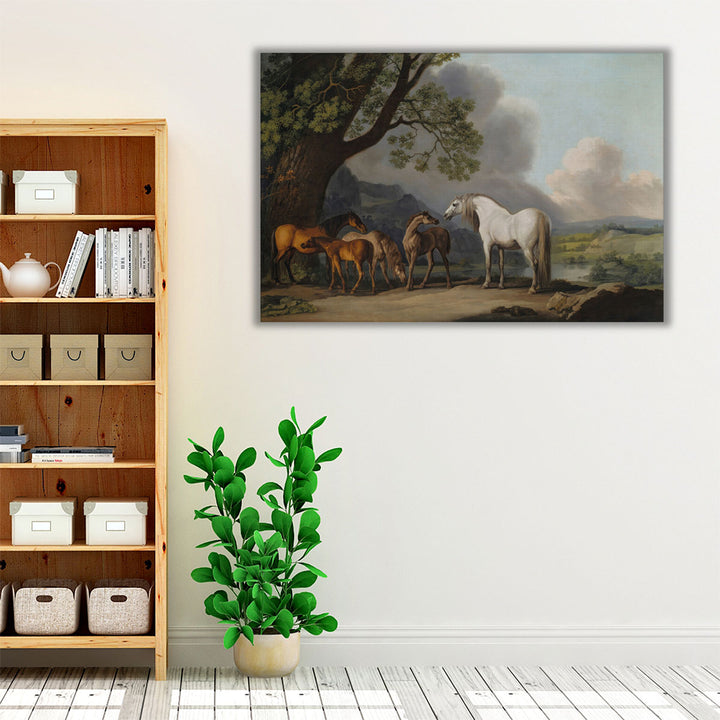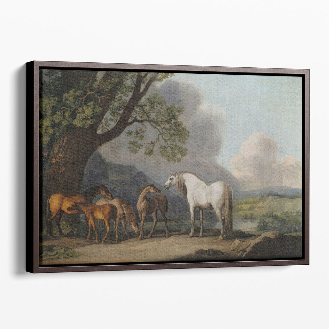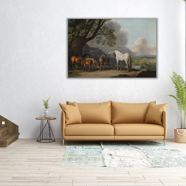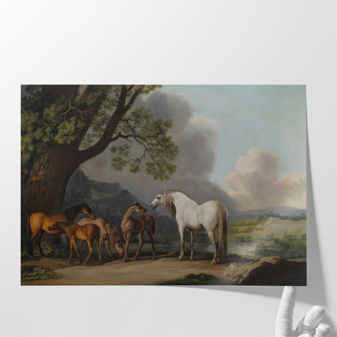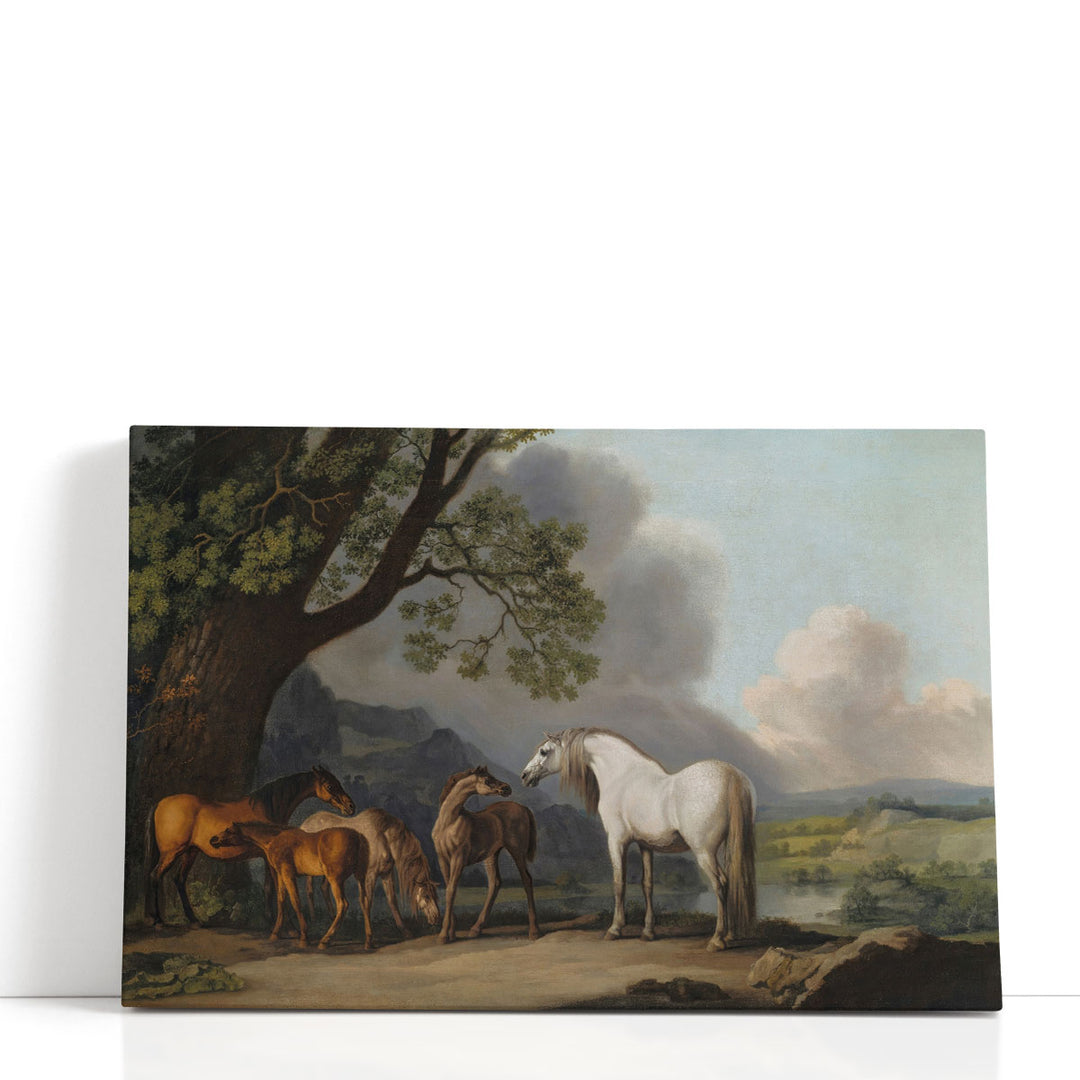 Mares and Foals in an Extensive Landscape Canvas Print by George Stubbs.