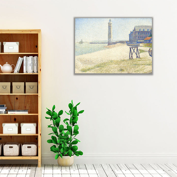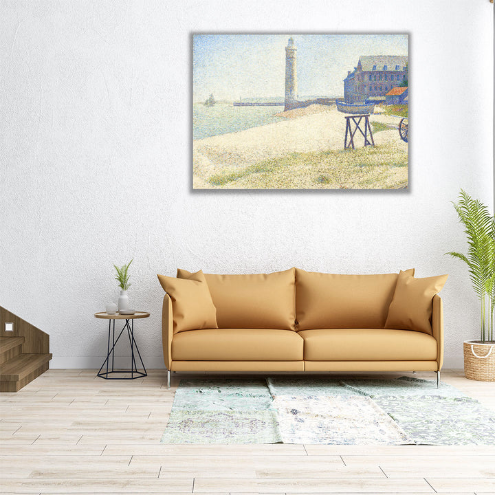 This classic lighthouse scene is rendered in neutral tones, offering a scenic view with timeless charm and Seurat’s refined artistic detail.