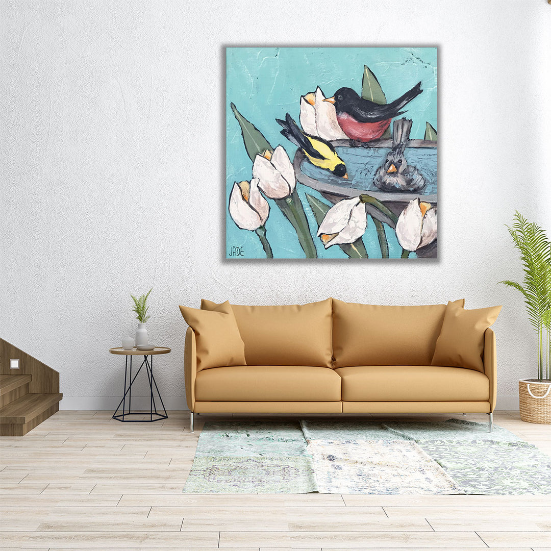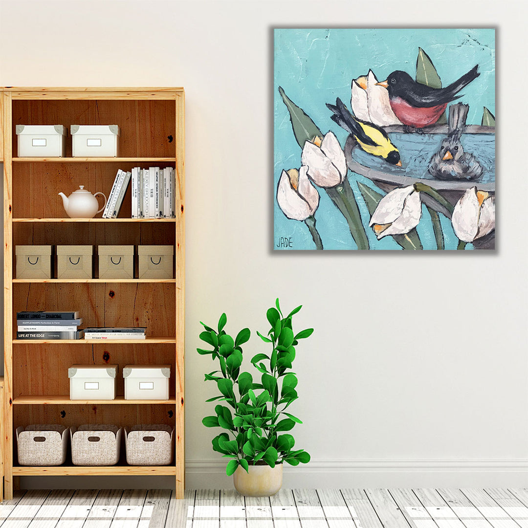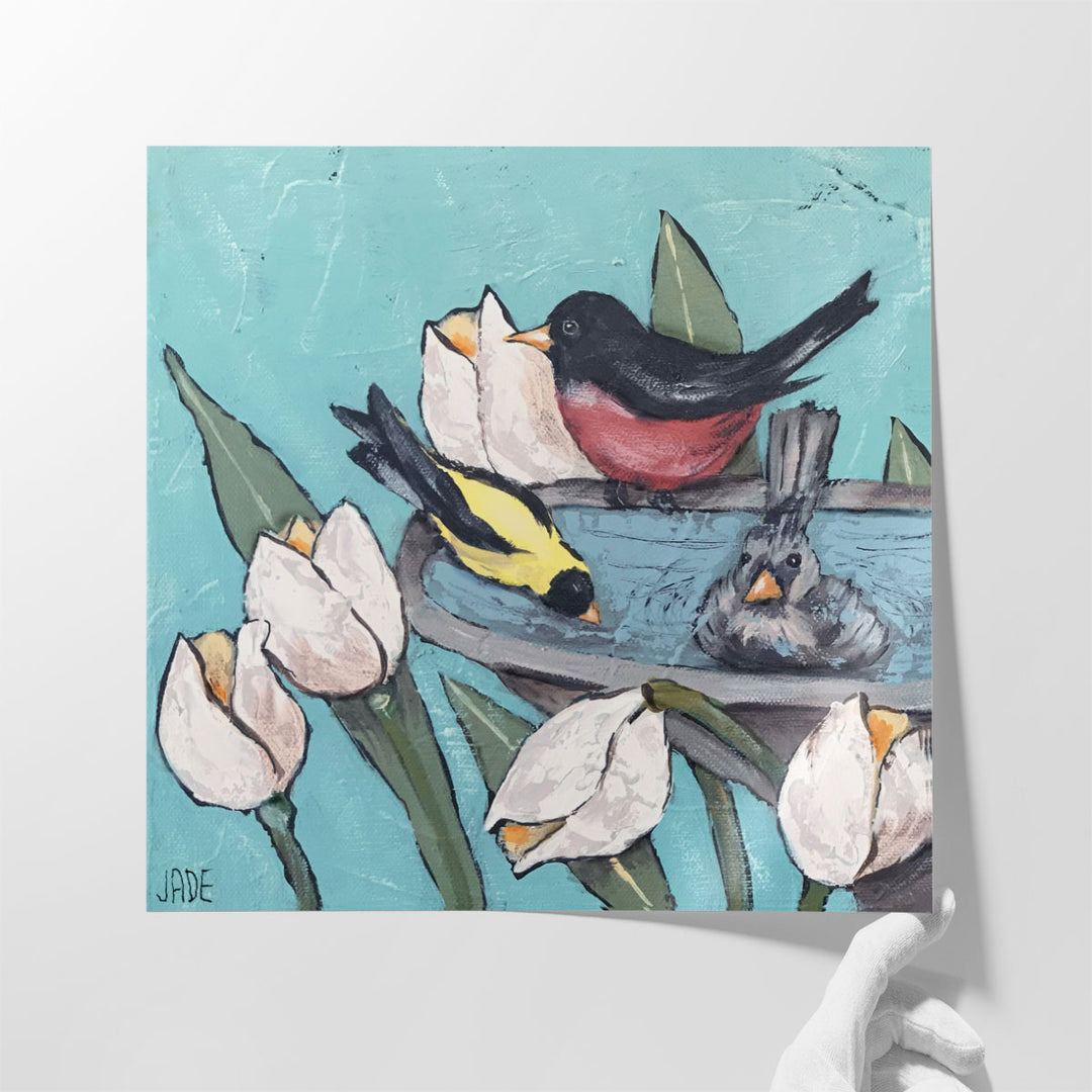 Garden Bird Bath Party I - Canvas Print Wall Art