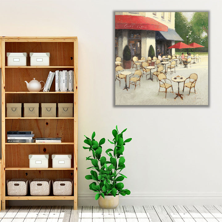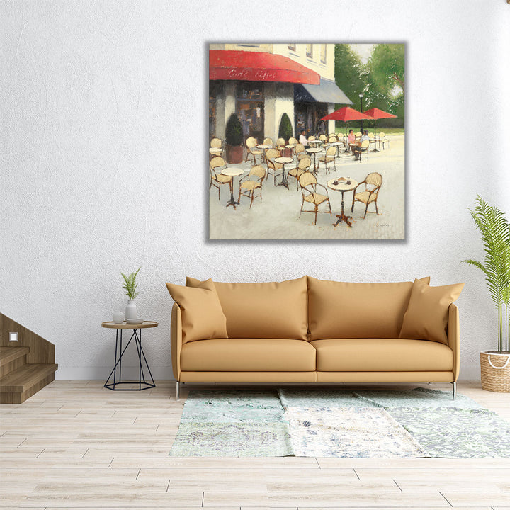 This stunning piece features a vibrant red theme balanced with neutral tones, exuding warmth and elegance in a contemporary style.