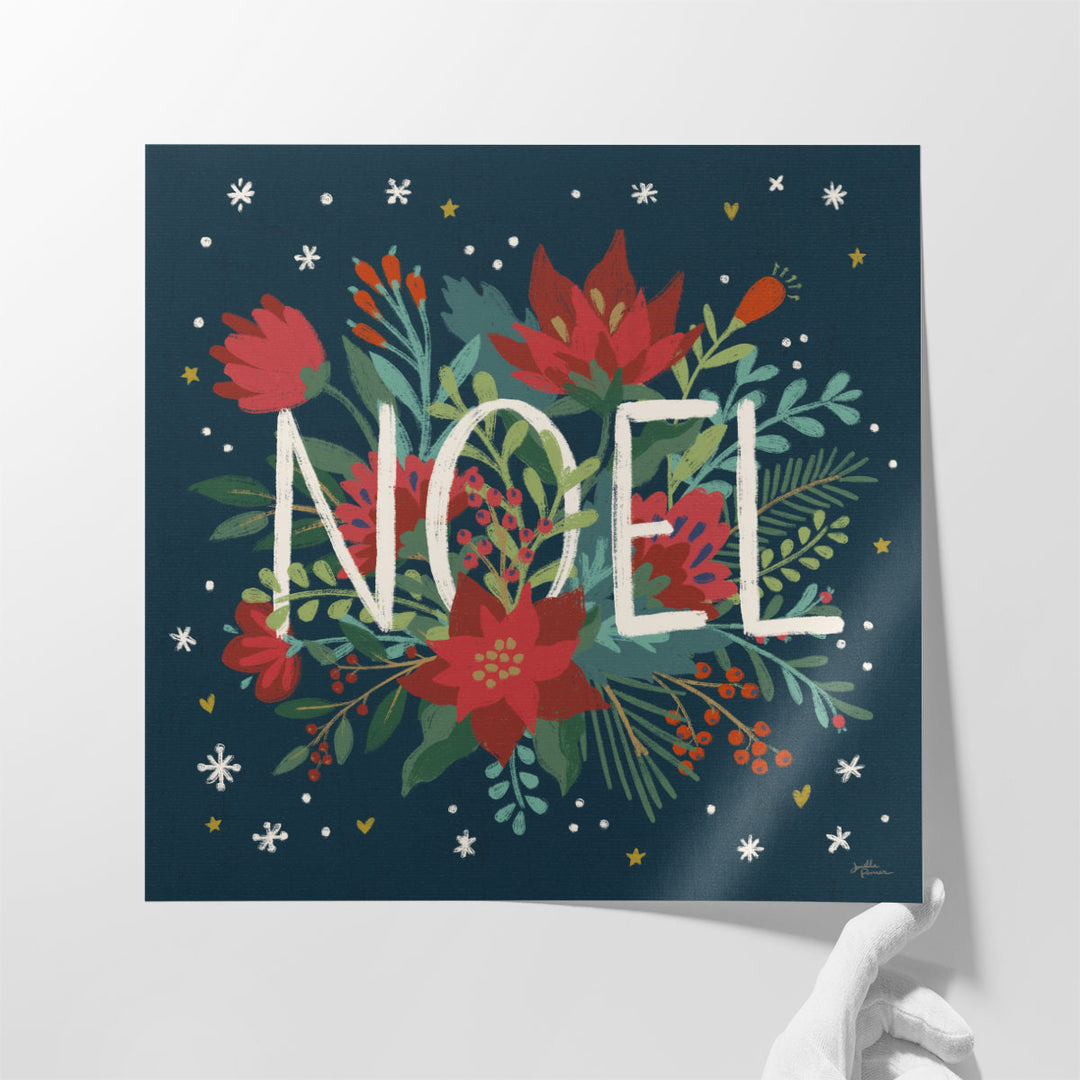 This beautiful wall art features "NOEL" text surrounded by vibrant flowers with a calming blue background, perfect for adding festive cheer to any space.
