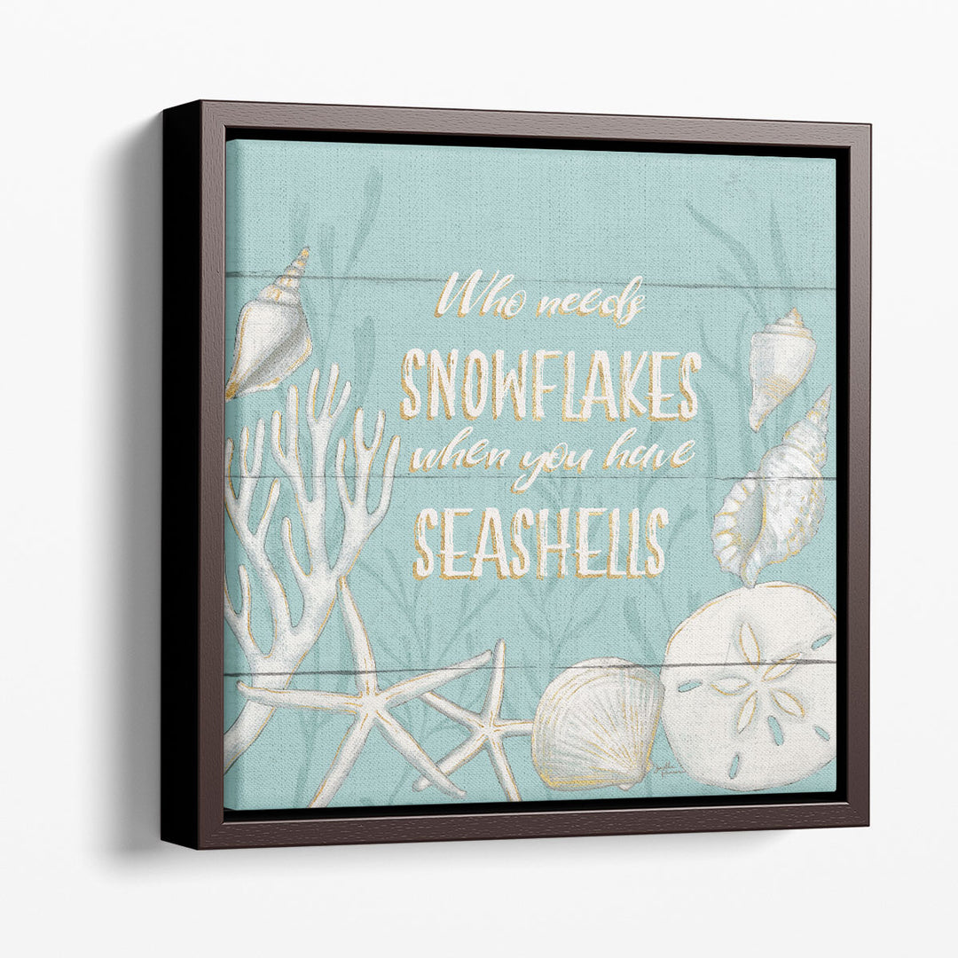 This serene artwork features seashells, starfish, and sea plants in soft blue tones, evoking a calm coastal vibe perfect for any space.