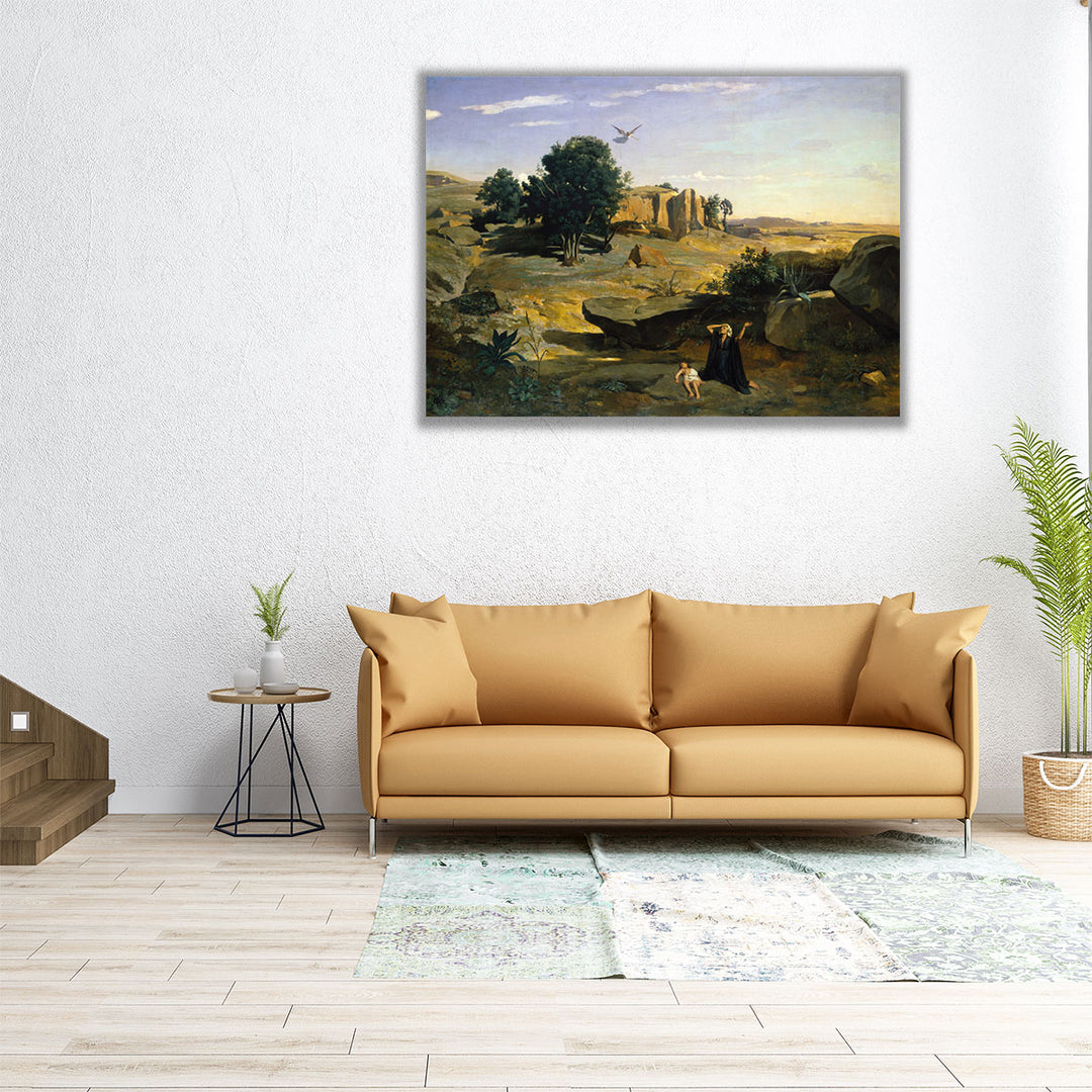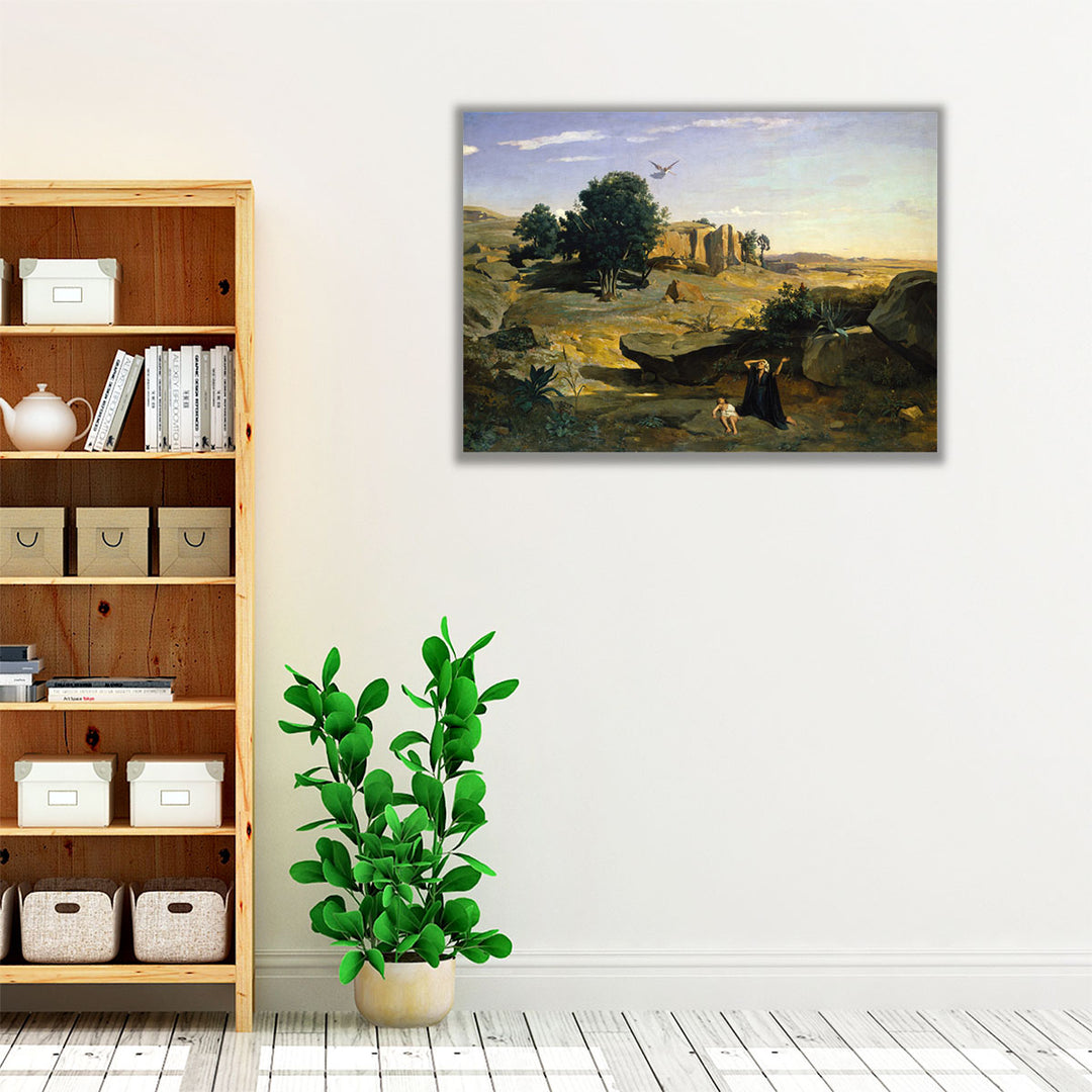 Hagar in the Wilderness, 1835 Canvas Art Print by Jean Baptiste Camille Corot.