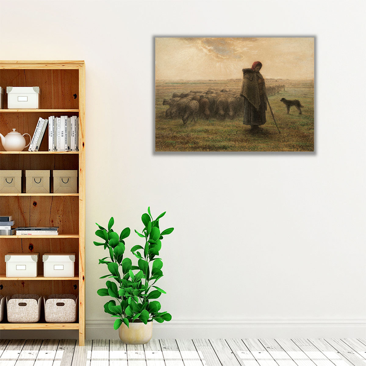 Shepherdess and her Flock canvas wall art by Jean-François Millet.