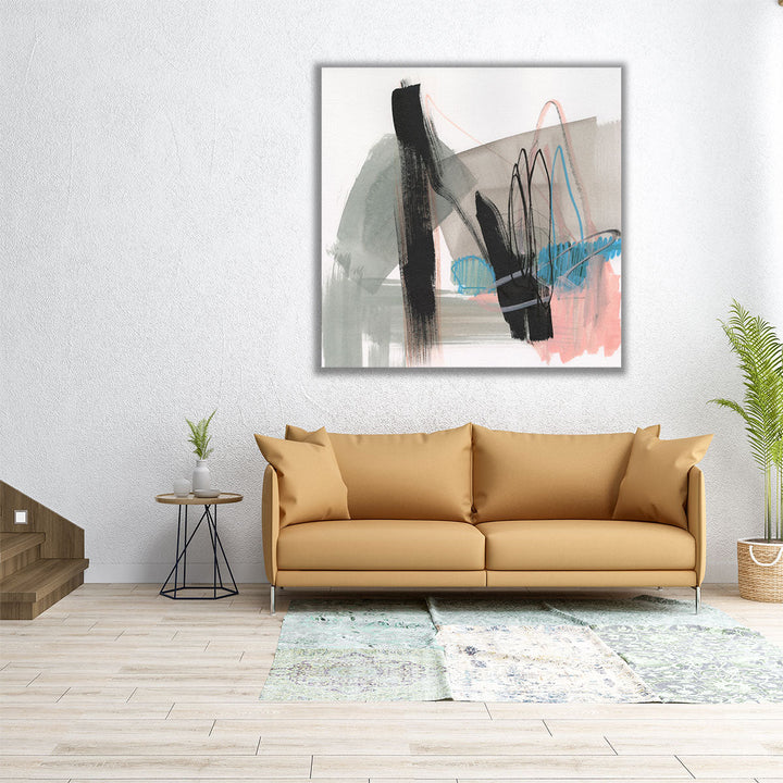 Embrace the essence of abstraction with this piece, featuring a dynamic interplay of colors and shapes that create a visually striking effect.