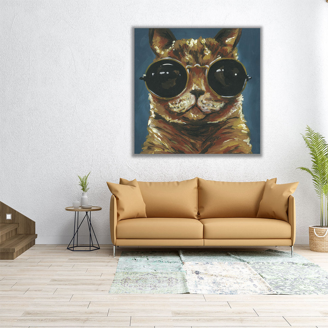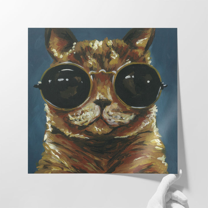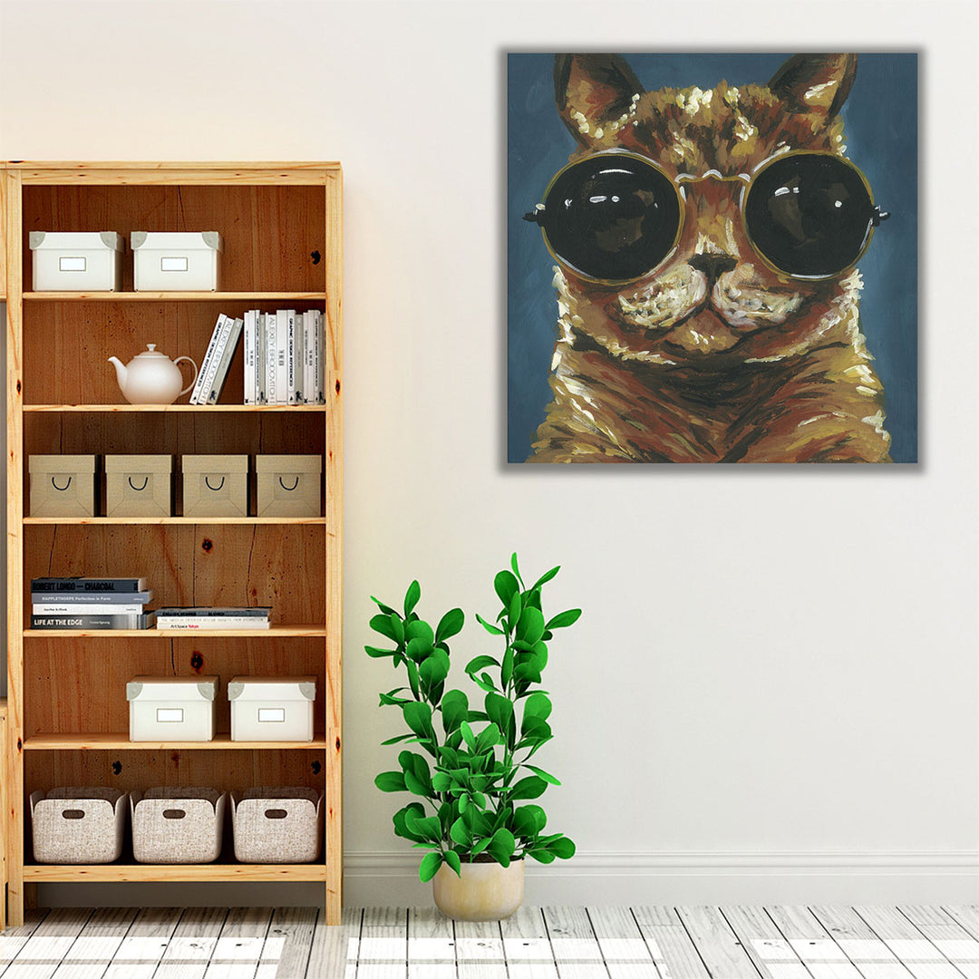 This charming piece features a fashionable cat wearing sunglasses, exuding style and personality in a playful, artistic design.