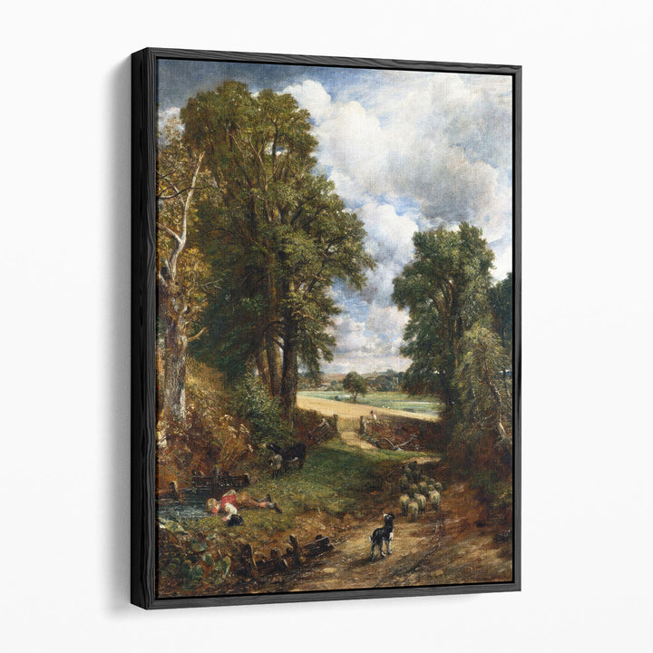 Classic charm flows through green trees and a peaceful path, enriched with neutral and green tones.