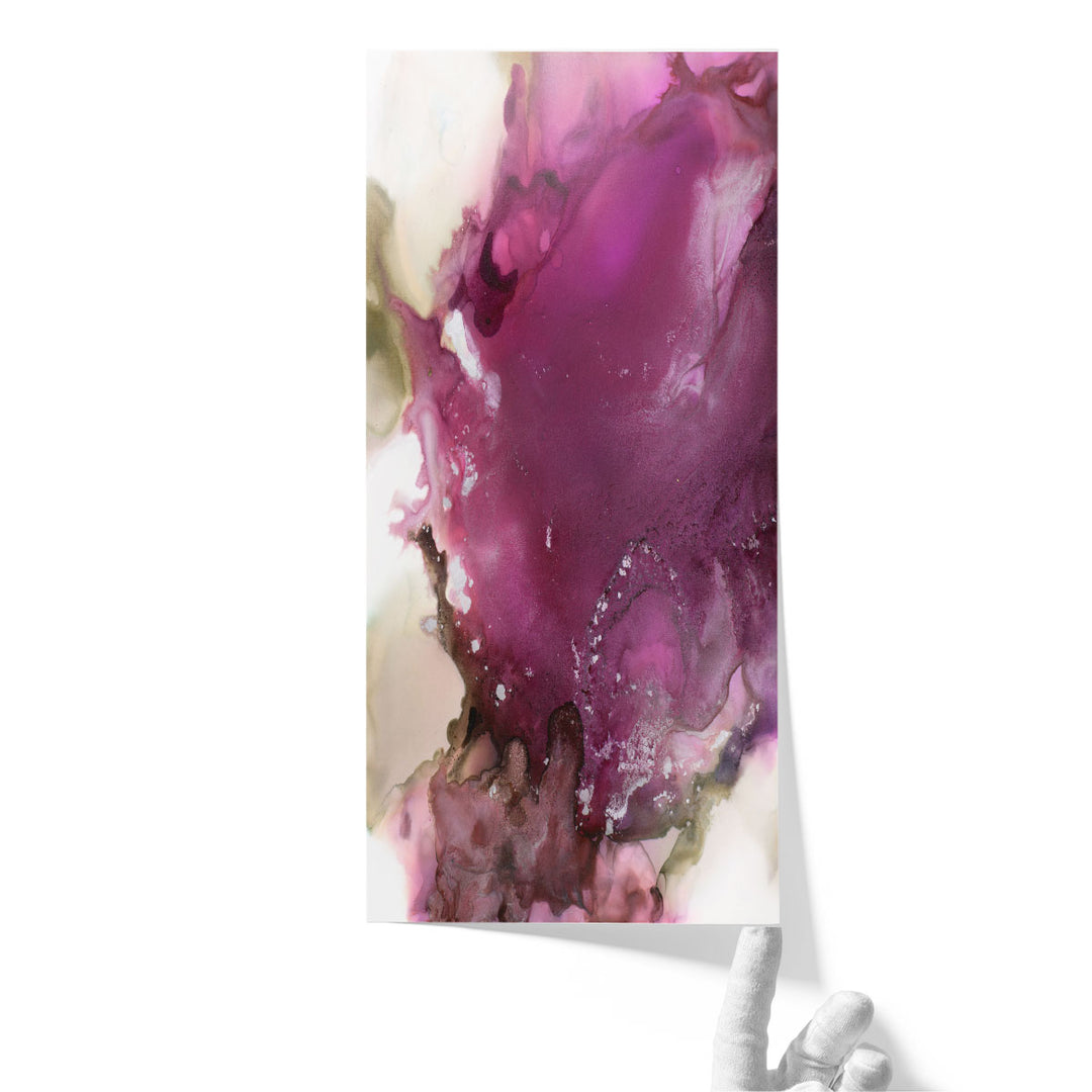 This abstract piece features bold purple hues, adding a dynamic and modern touch to any living room space.