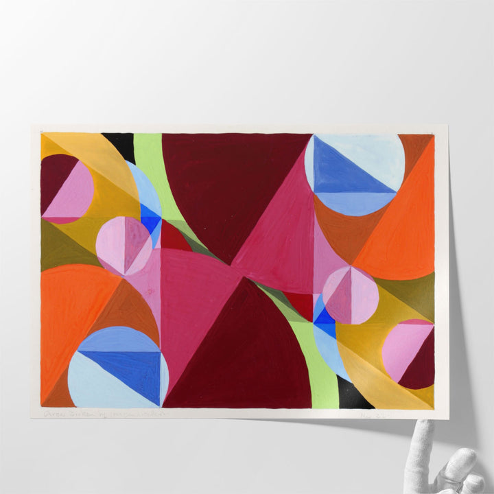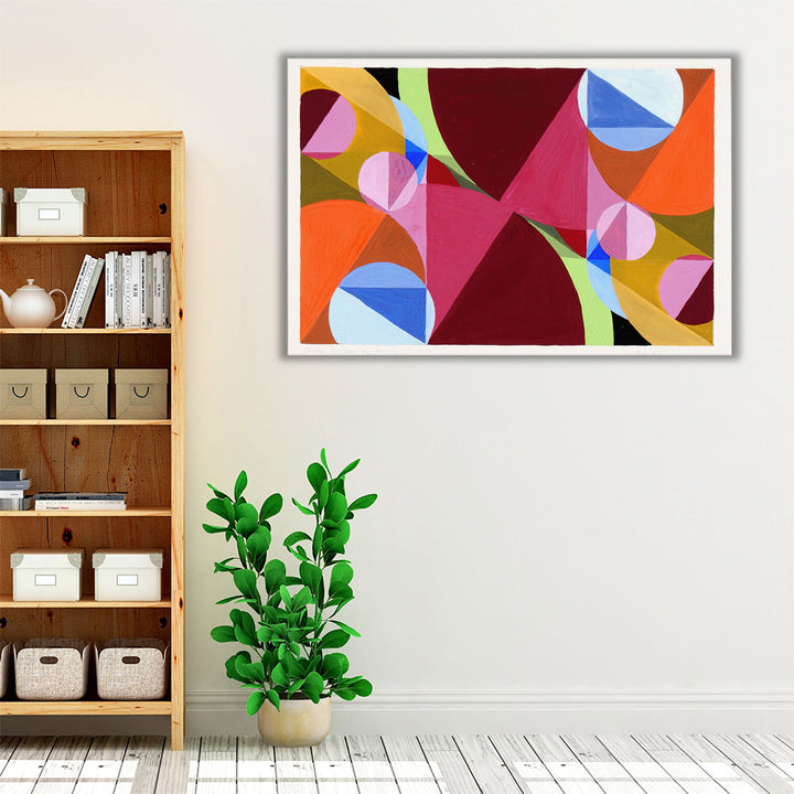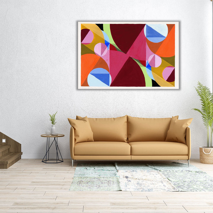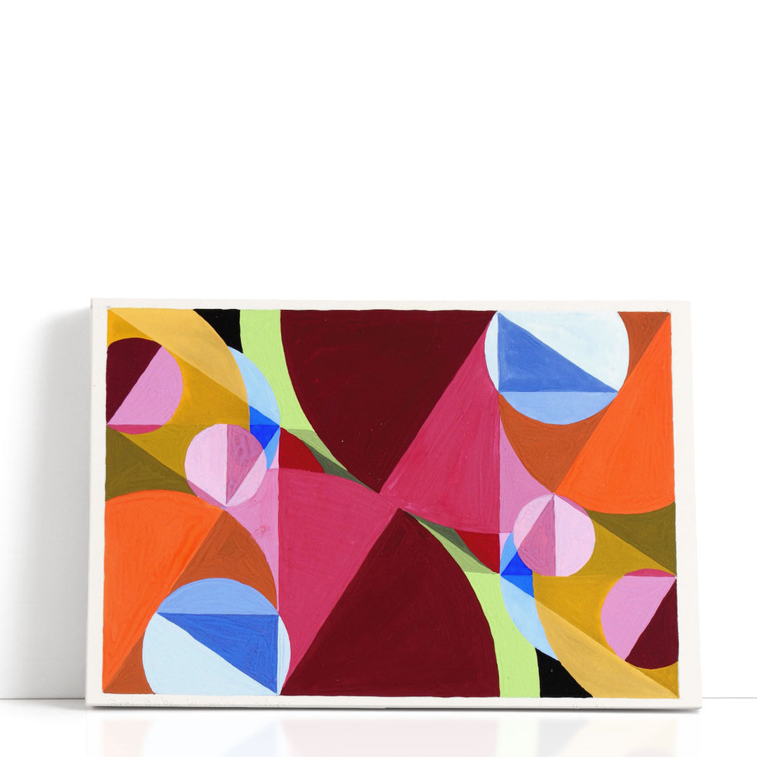 This colorful abstract and geometric artwork blends sharp forms and vibrant tones into a bold modern composition.