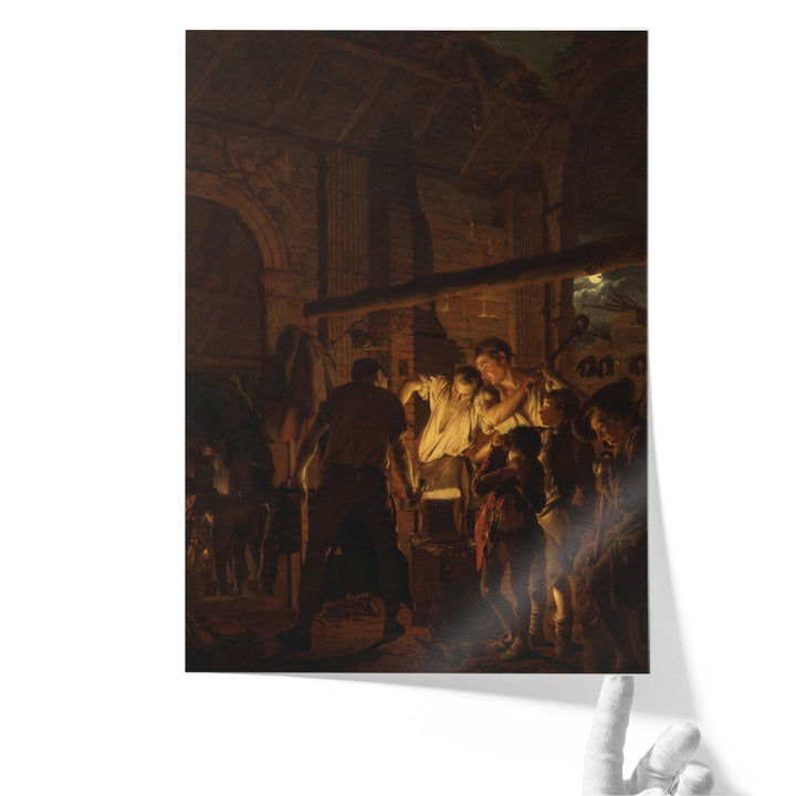 The Blacksmith's Shop Canvas Art Print by Joseph Wright of Derby.