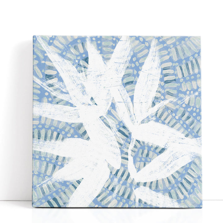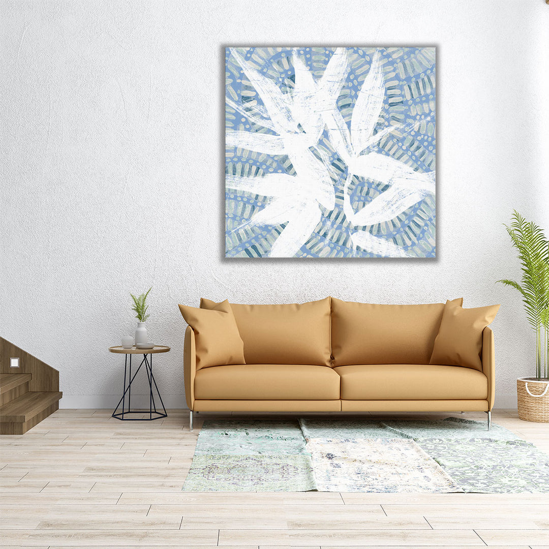 Abstract design using blue and white tones adds a serene touch to modern interiors.