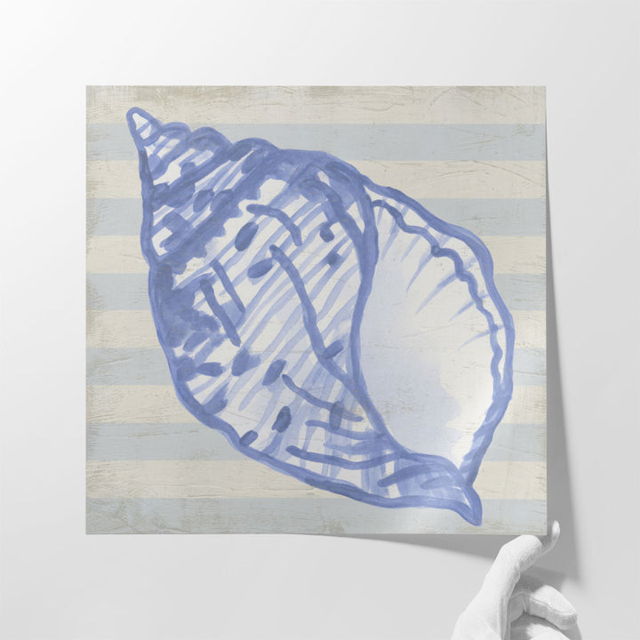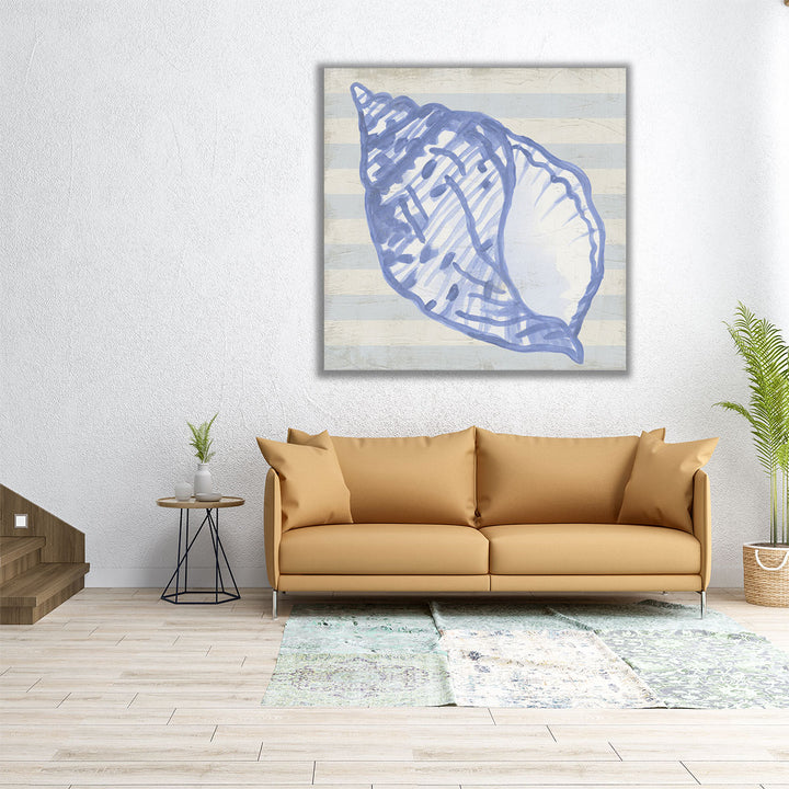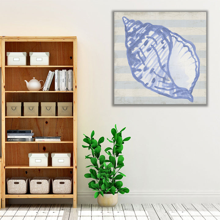 Blue Shell on Stripes I - Canvas Print Wall Art