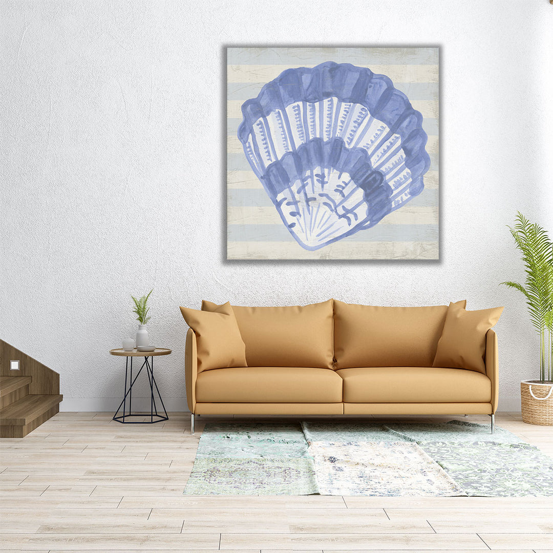 Blue Shell on Stripes II - Canvas Print Wall Art