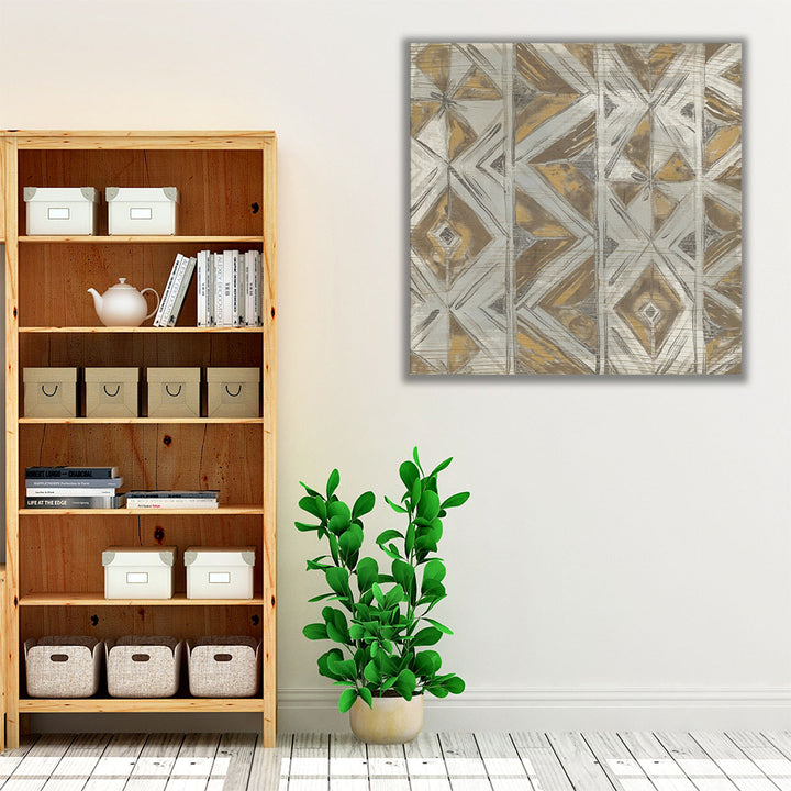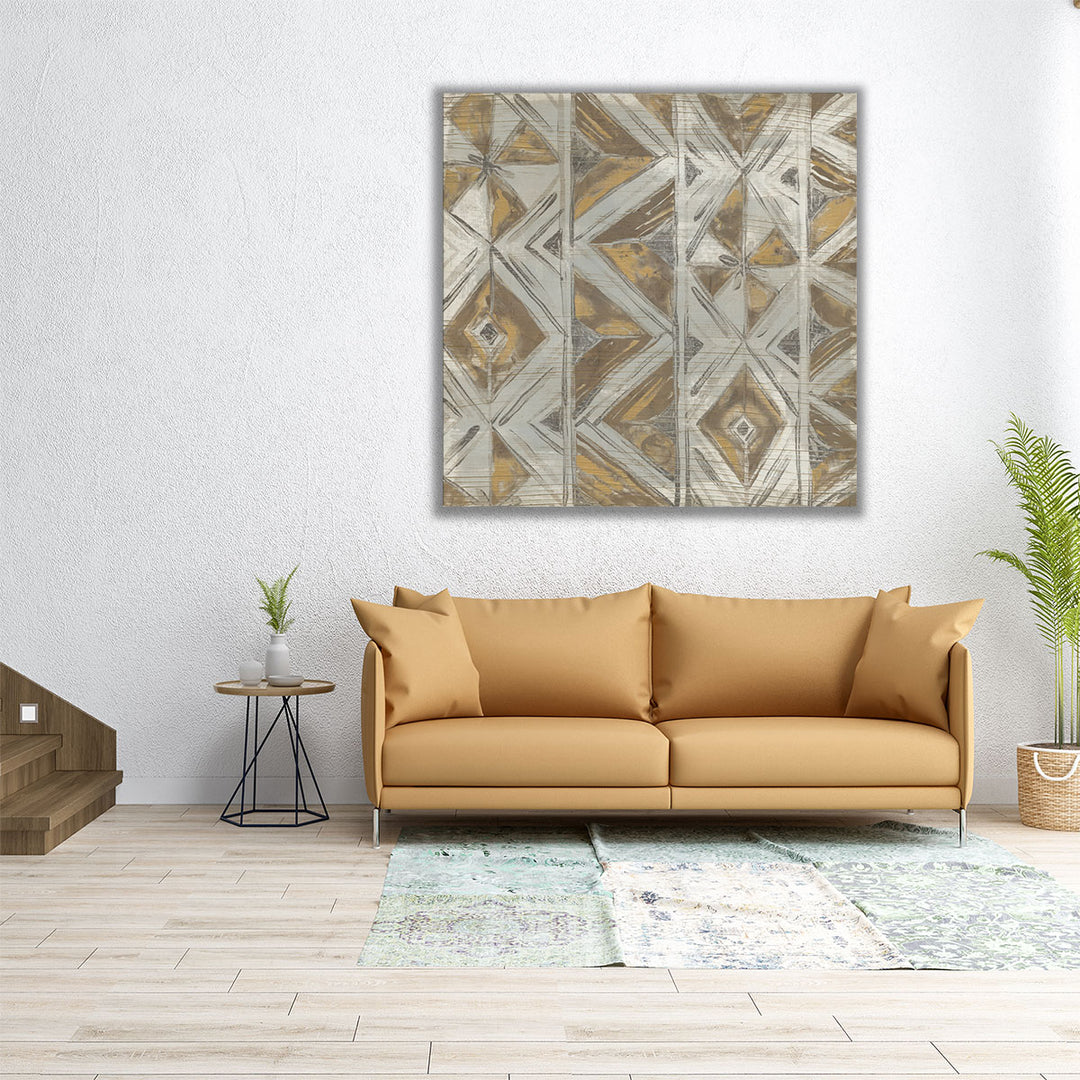 Abstract patterns blend effortlessly with a rich palette of brown and gray, exuding contemporary elegance in every detail.
