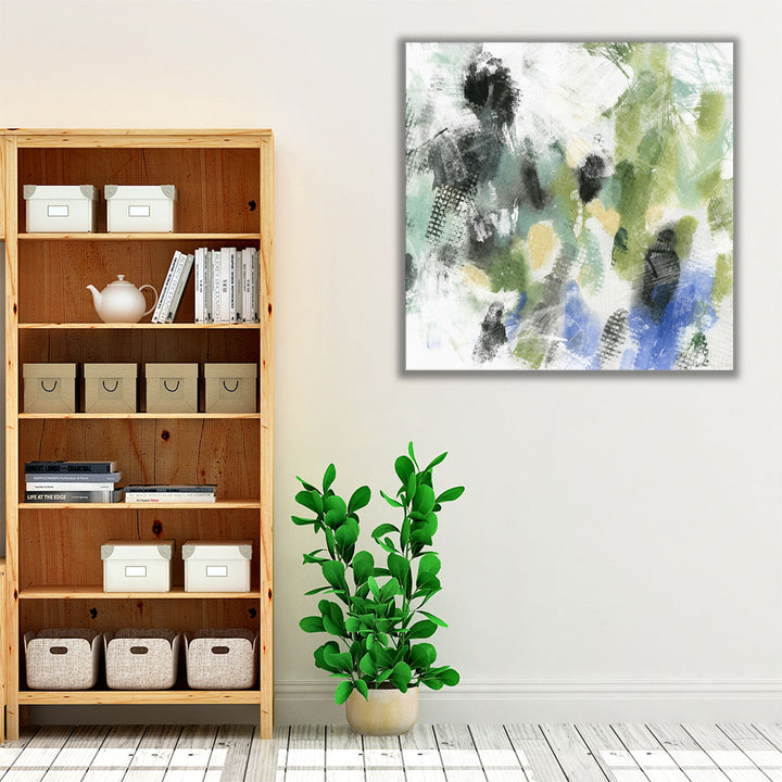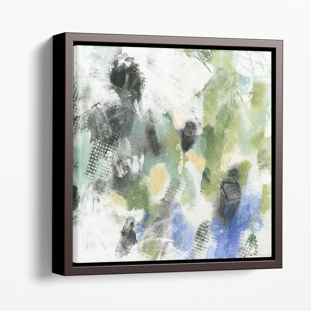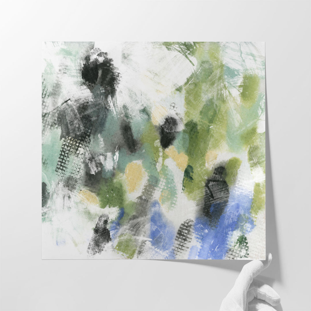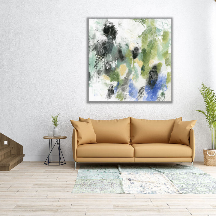 Crafted in an abstract style, the artwork blends shades of green, black, and neutral tones, evoking a serene and modern aesthetic.