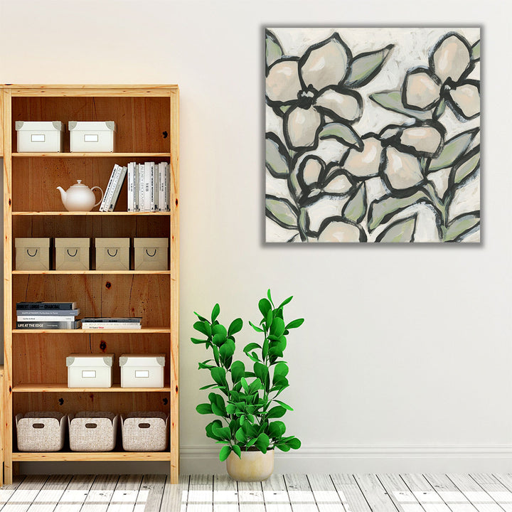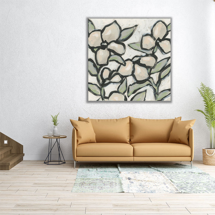 A beautiful abstract composition, with black and neutral tones, showcasing a striking abstract flower design.