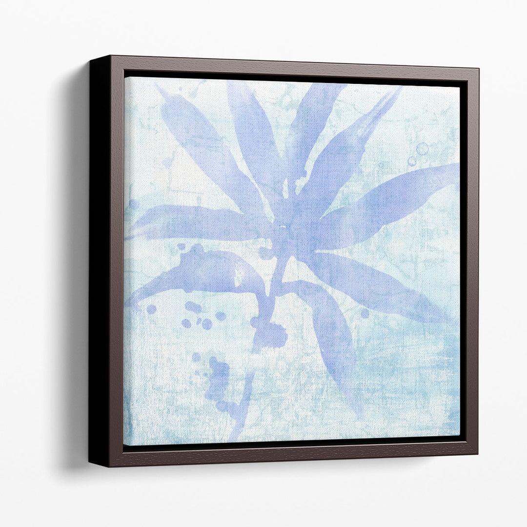 A watercolor depiction of a palm leaf in serene blue tones captures the essence of floral nature in this elegant piece.