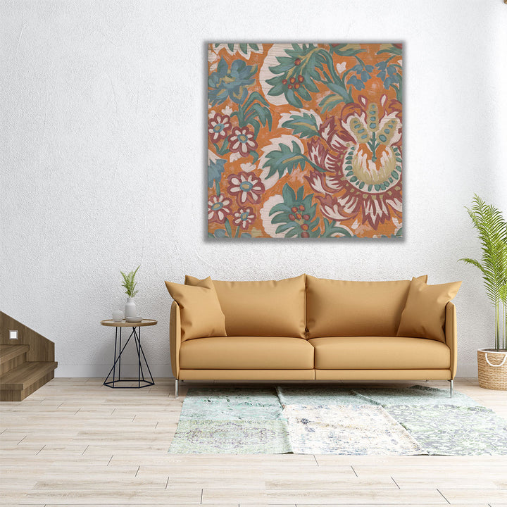 A stunning blend of abstract decorative art, highlighting warm tones of orange and green with a modern flair.