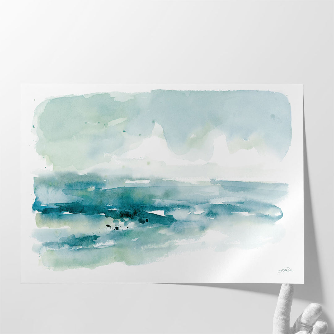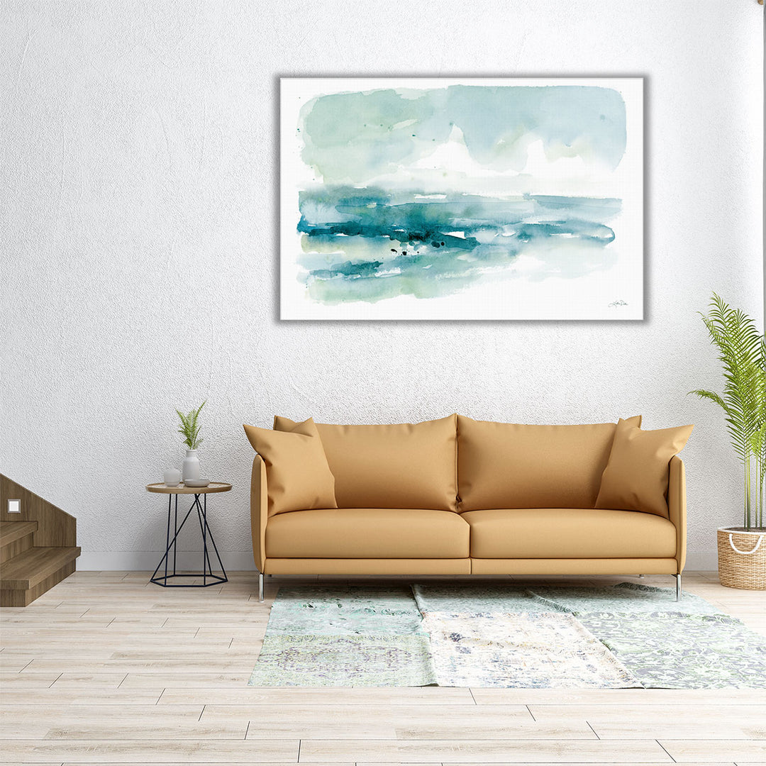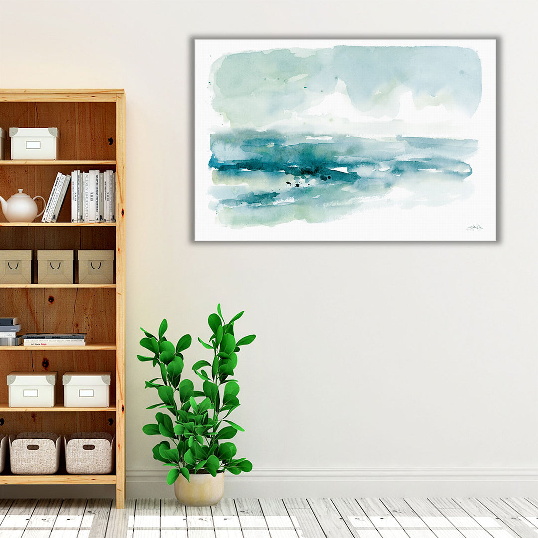 This abstract artwork in neutral and blue tones adds a calming and modern touch to any space.