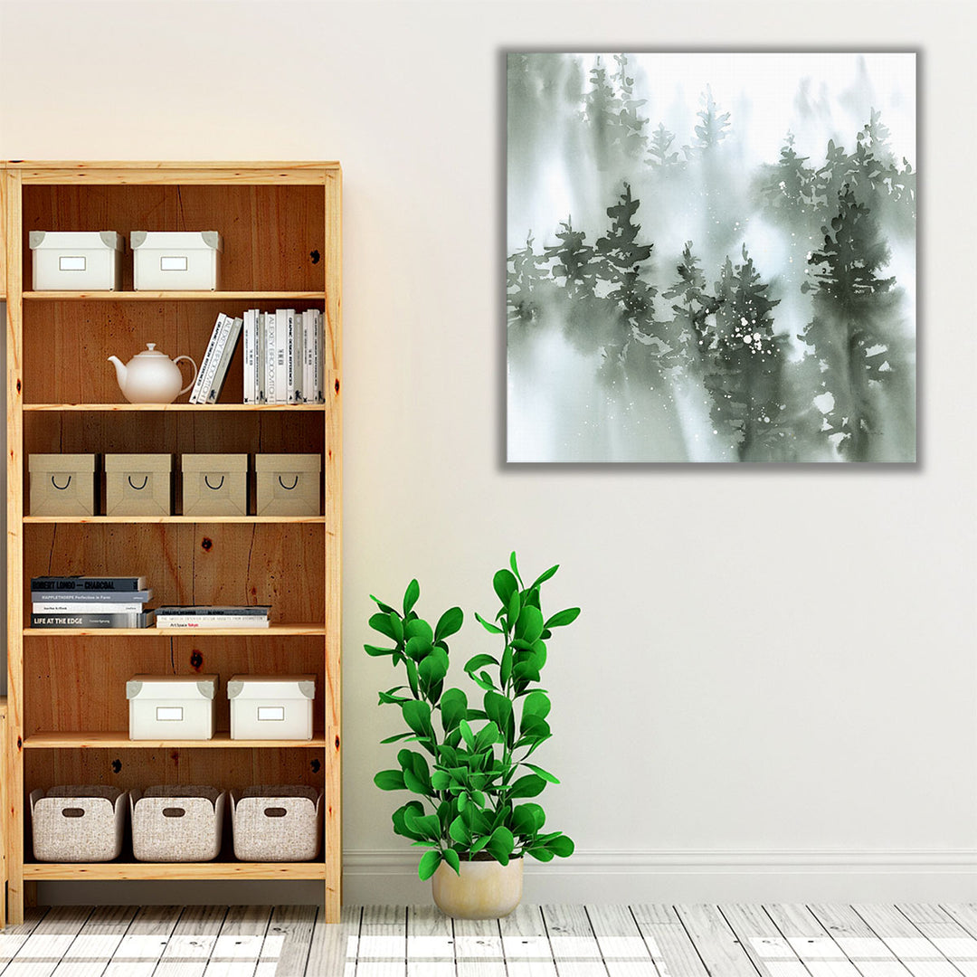 A serene depiction of a gray, neutral forest scene, perfect for adding calmness to any space.