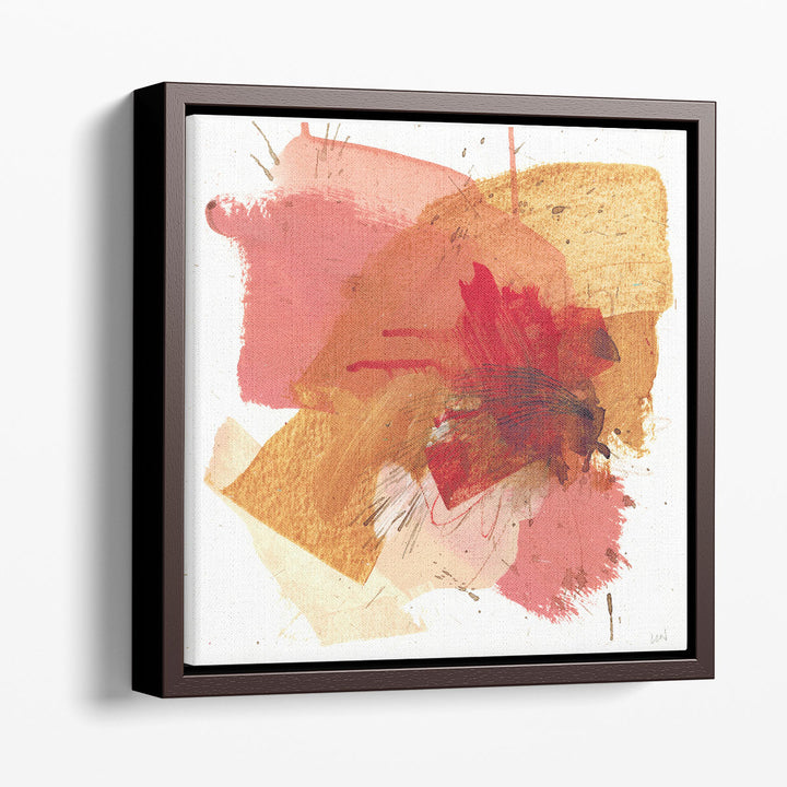 This abstract artwork blends shades of white, pink, and orange to create a captivating, expressive piece full of dynamic energy.