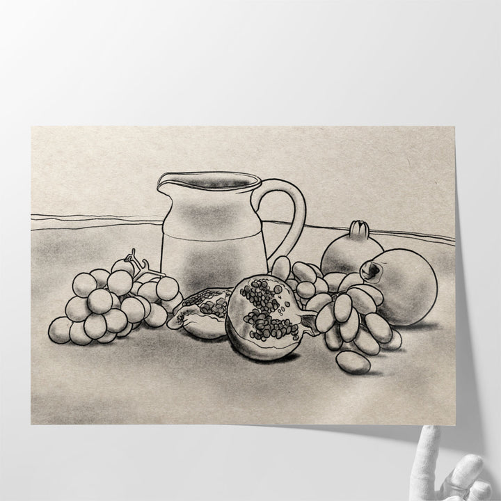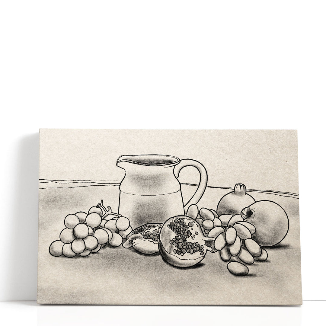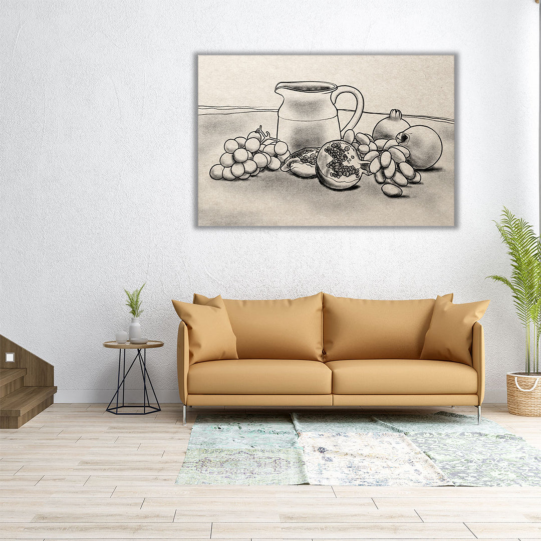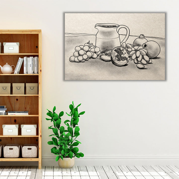 Oversized Still Life Wine Prints, Monochrome Fruits Wall Art, Modern Kitchen Wall Decor | Fruits And Wine