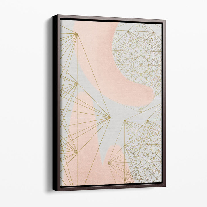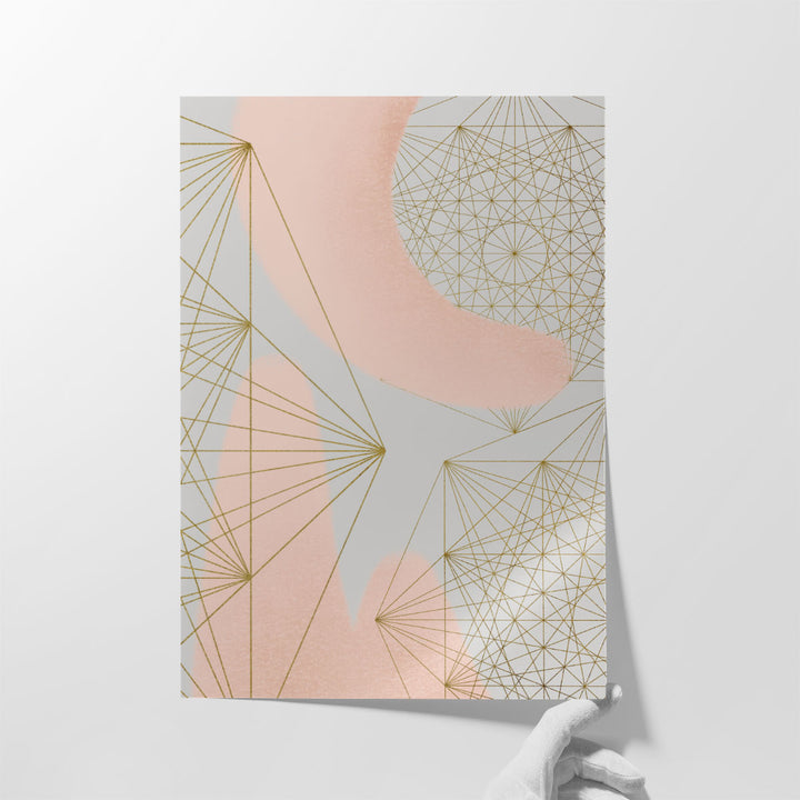 This abstract geometric artwork blends neutral and pink tones, creating a bold modern design with striking balance and form.