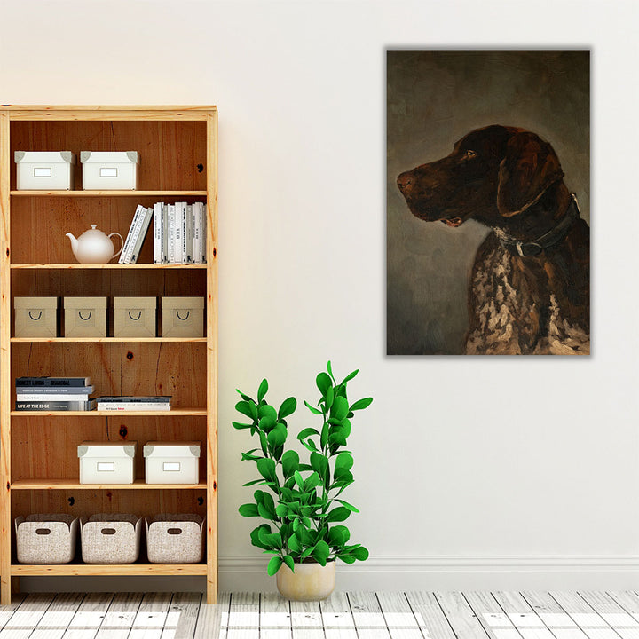 This artwork features a majestic brown dog, capturing its strength and grace with detailed brushstrokes in a timeless and classic style.