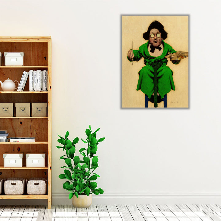 Light-hearted, people-focused portrait with playful expression and classic Parrish detailing, a witty study that adds character to walls.