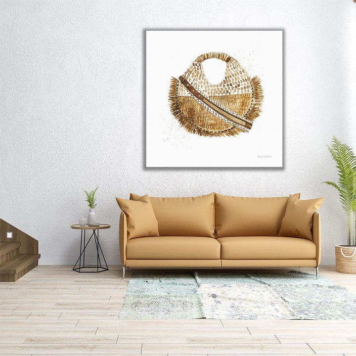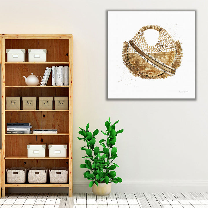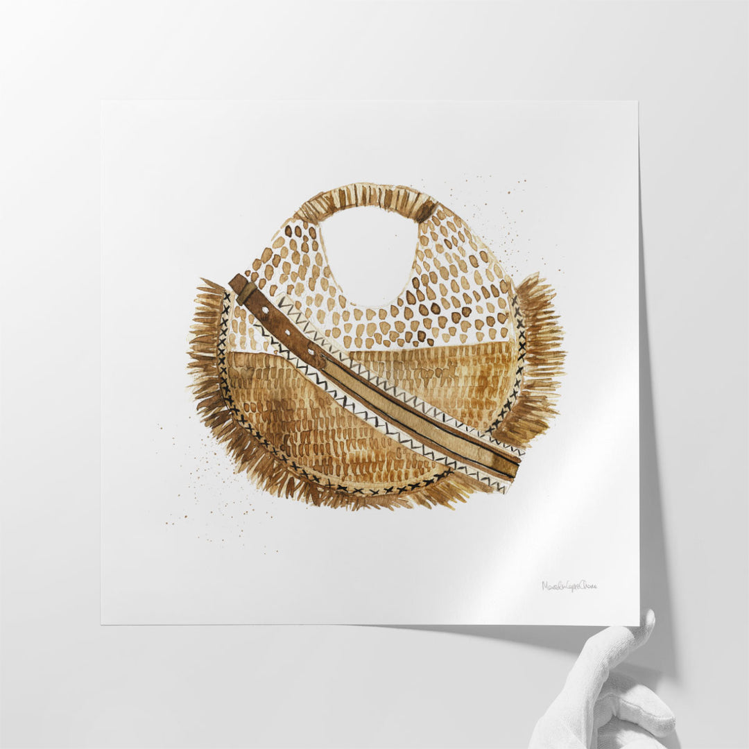 This vibrant art piece showcases a fashionable beach bag, perfectly embodying the essence of beach glam and summer style.