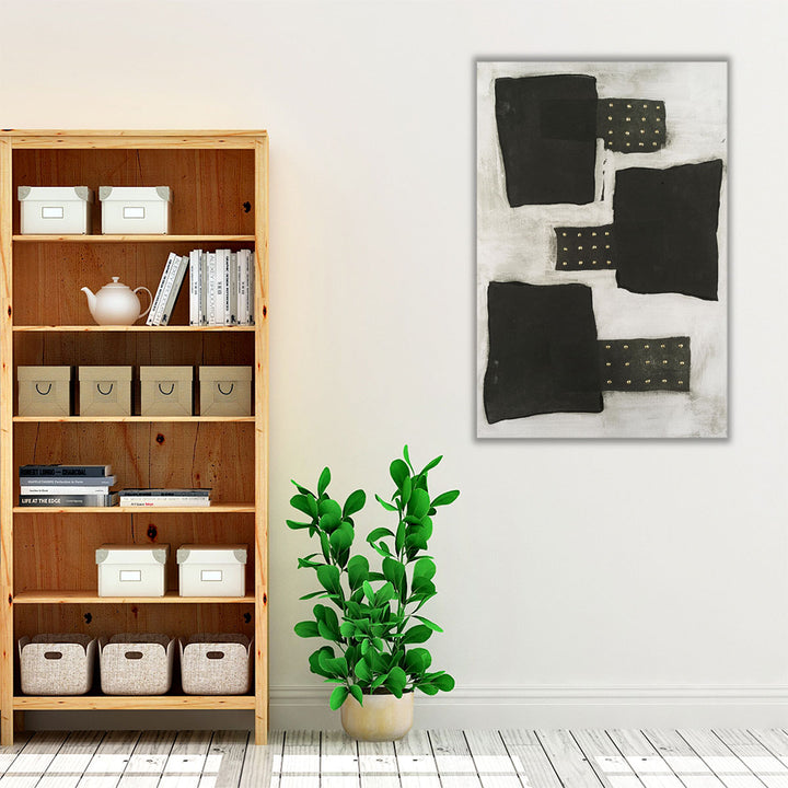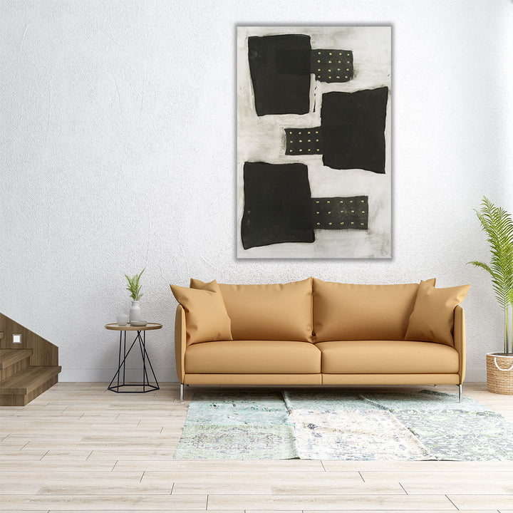This black abstract artwork presents a modern interpretation of fluid motion and depth, adding a bold touch to any contemporary space.