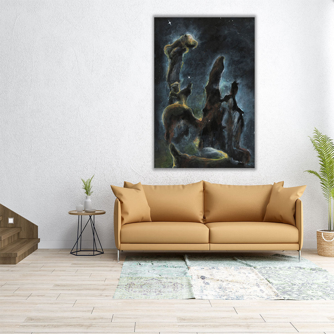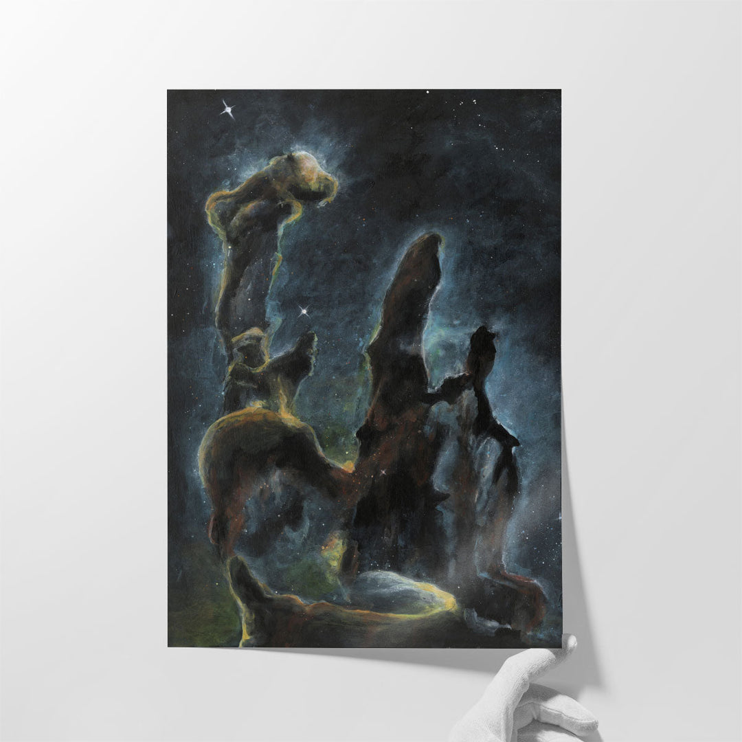 Explore the cosmos with this art print featuring a vibrant nebula, capturing the vastness of space and the awe-inspiring beauty of distant celestial bodies.