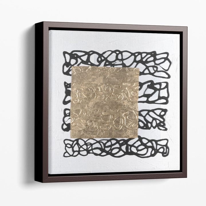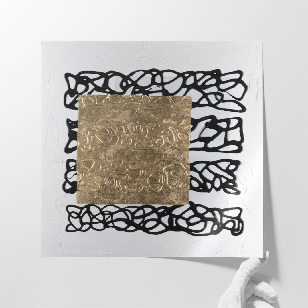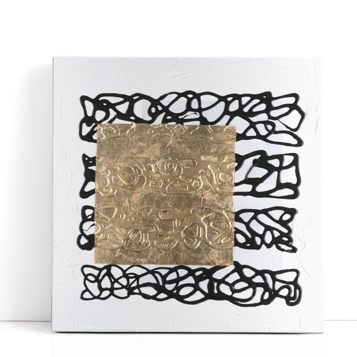 Metallic Square Abstract Canvas Wall Art, Contemporary Hallway Wall Decor | Golden Script II Black and White
