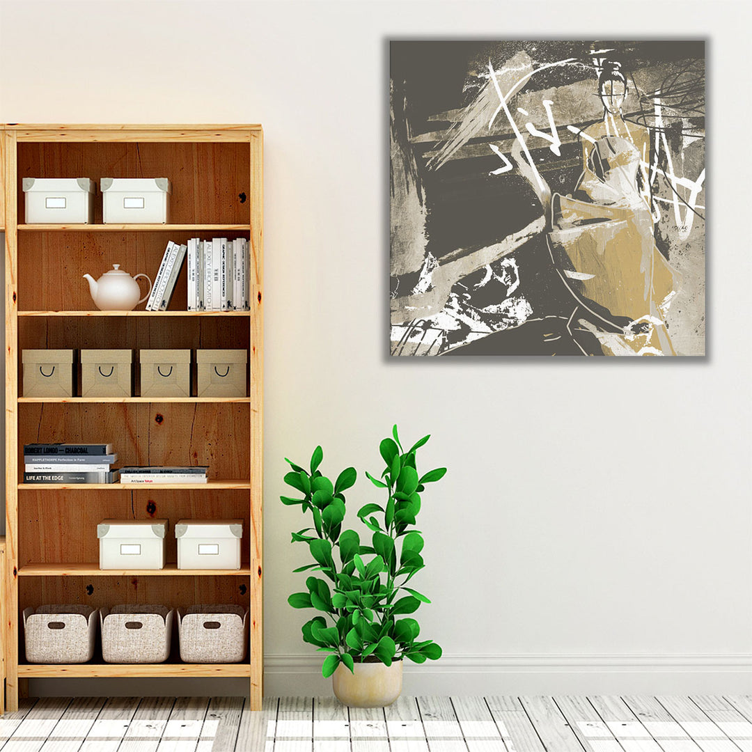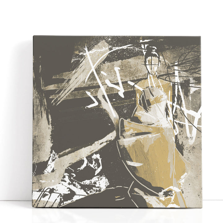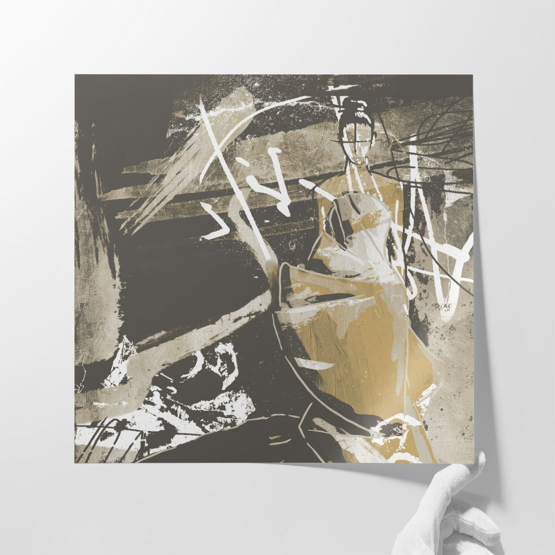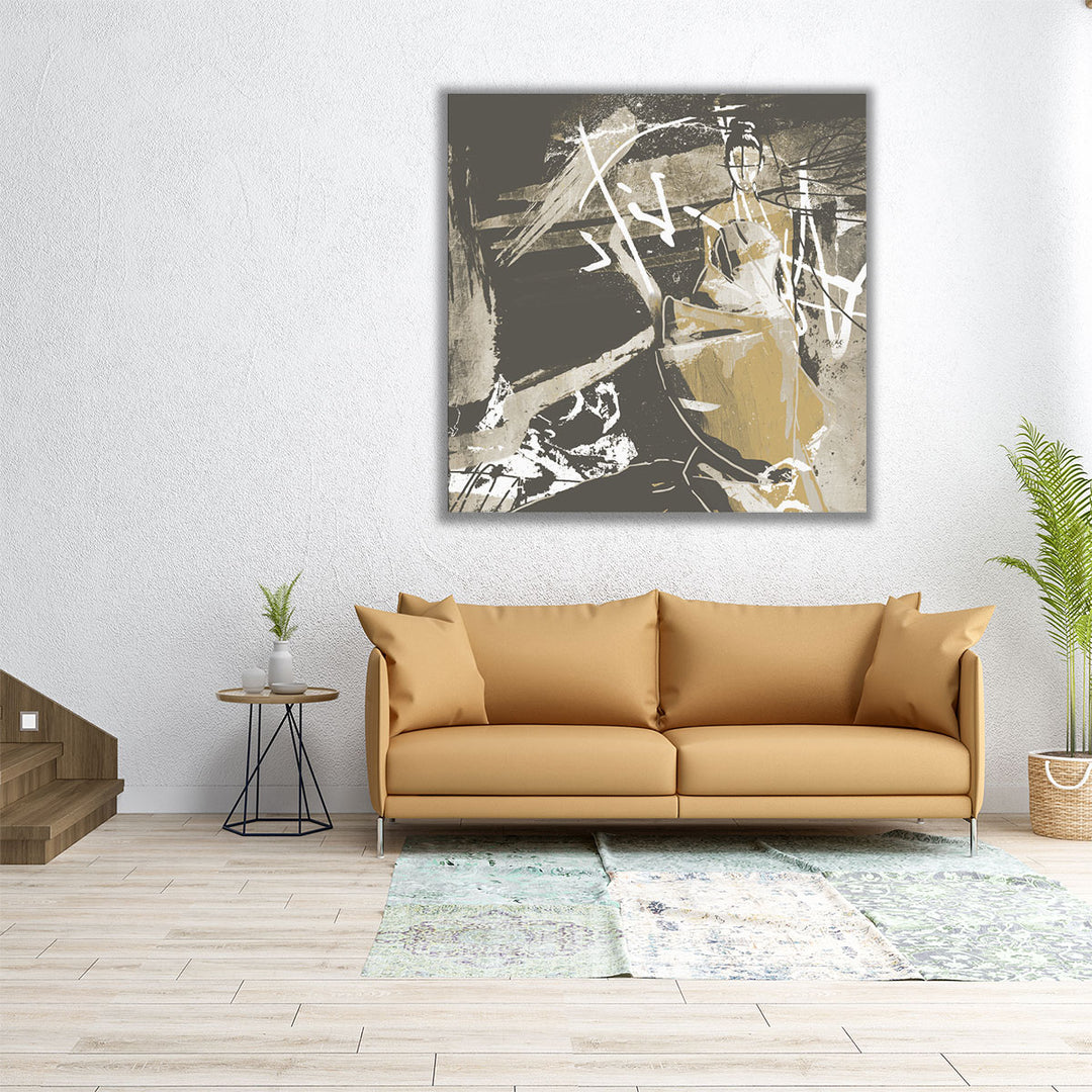 This abstract artwork features fluid shapes and soft beige tones, creating a modern and sophisticated aesthetic.