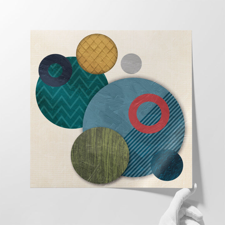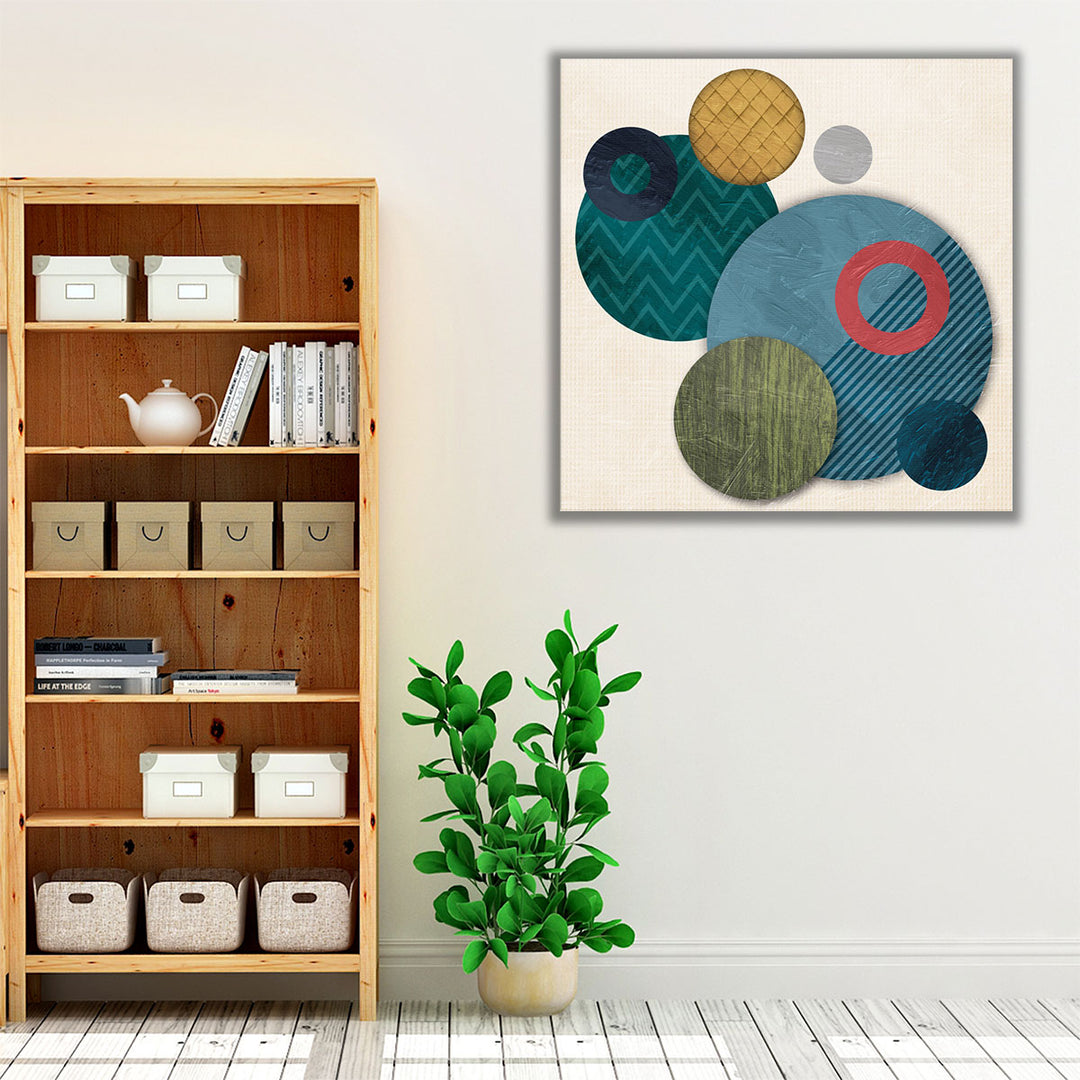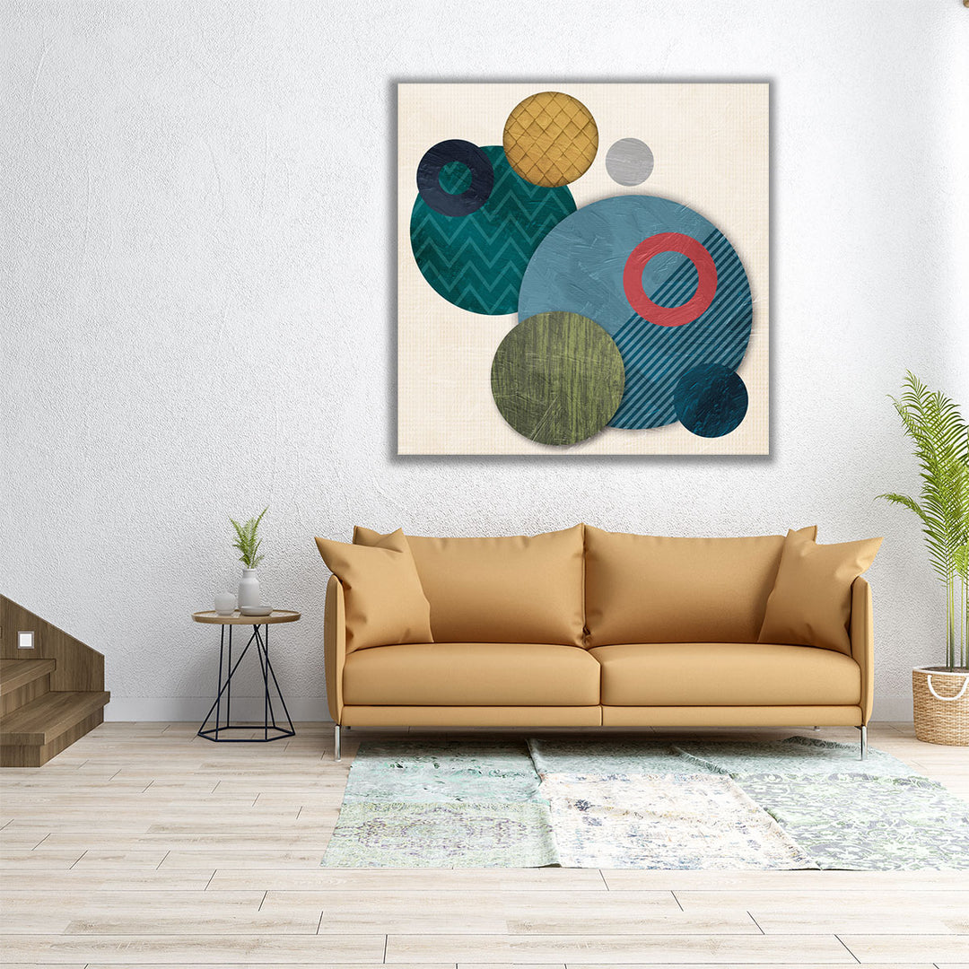 This abstract composition features dynamic shapes, creating a visually engaging piece that adds modern sophistication to any space.