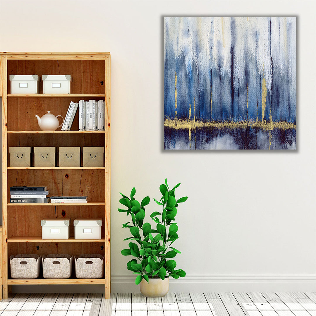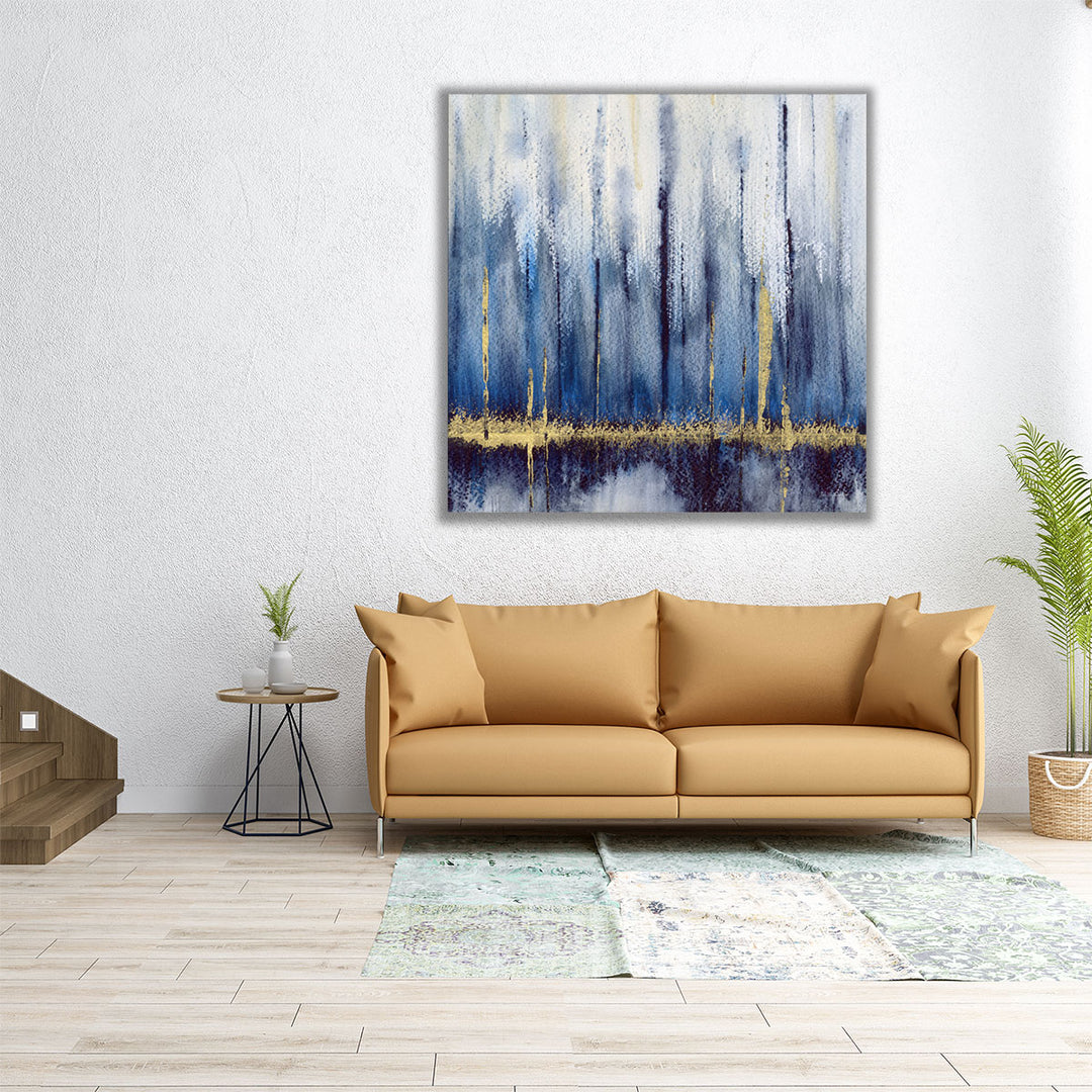 Blue And Gold Wall Art, Modern Square Abstract Wall Art, Large Canvas Wall Art For Living Room | Indigo With Gold 2